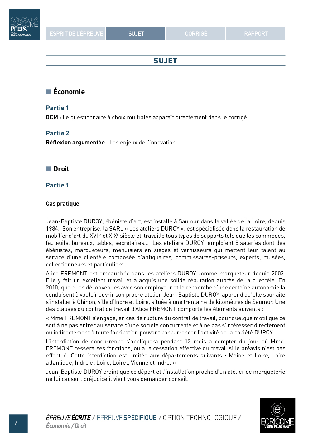 Concours Ecricome Prépa 2013 - Économie et droit (Sujet)