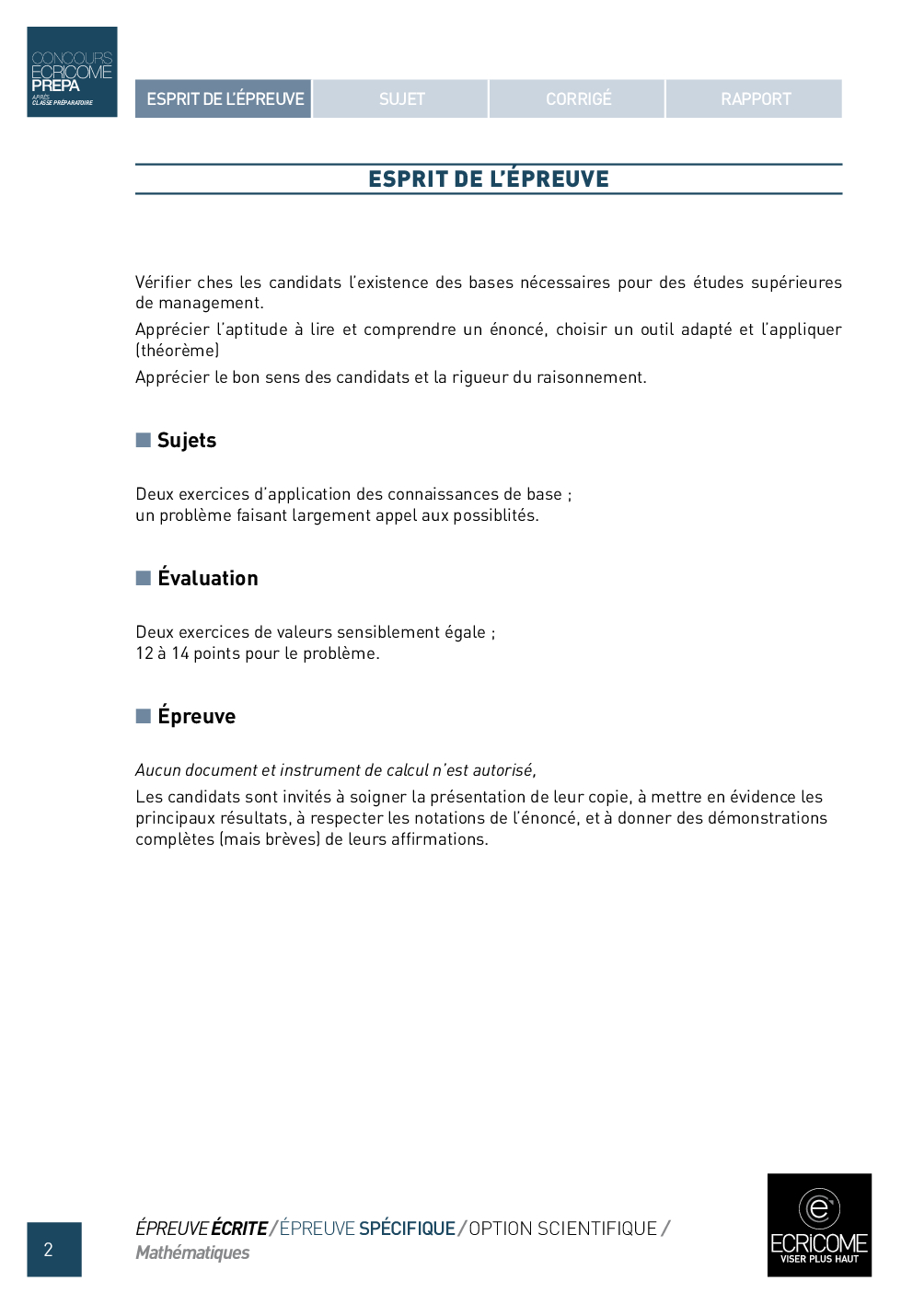 Concours Ecricome Prépa