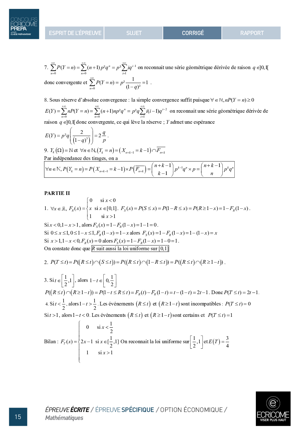 Concours Ecricome Prépa 2014 - Mathématiques (Option économique - Corrigé)