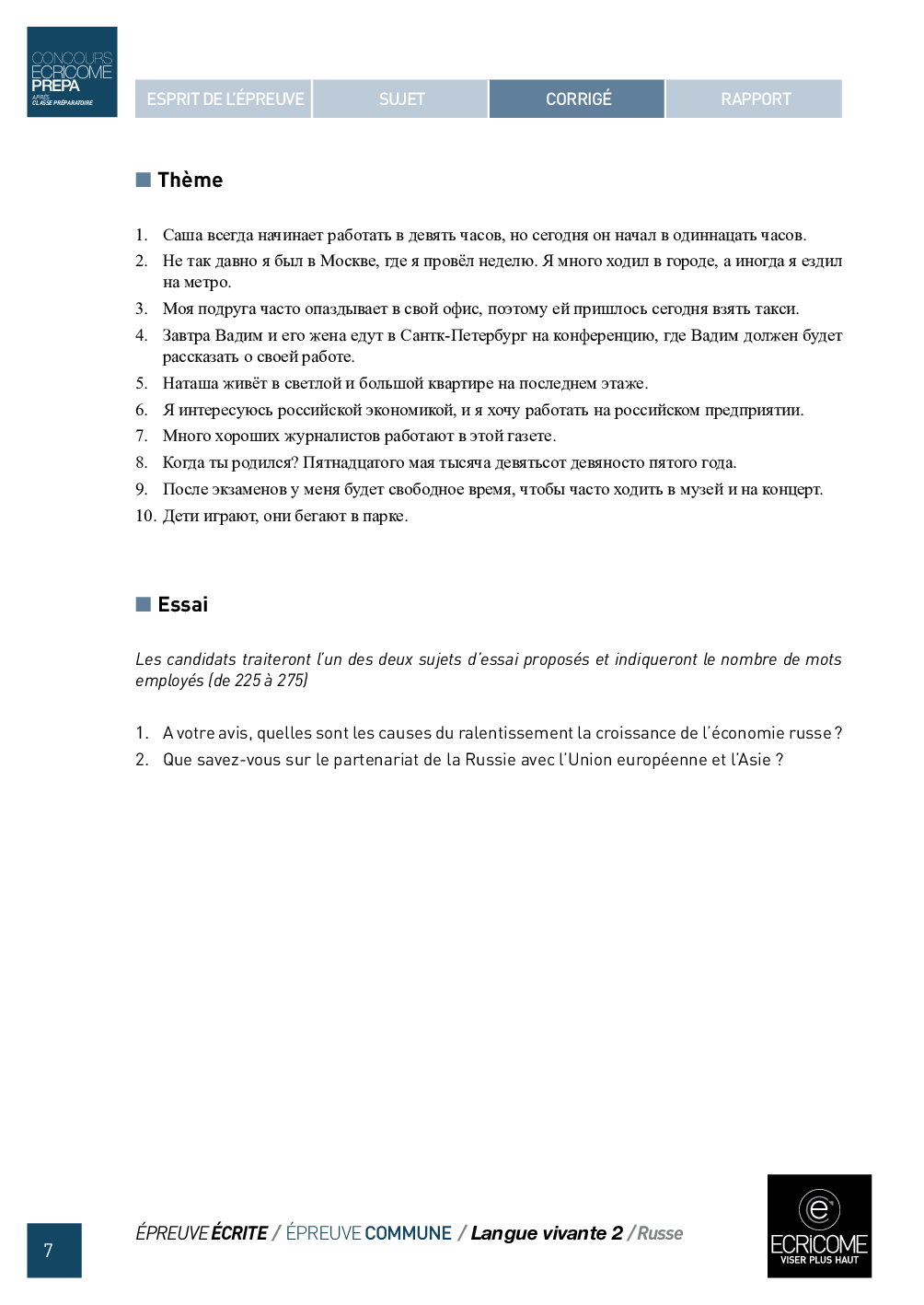 Concours Ecricome Prépa 2014 - Russe LV2 (Corrigé)