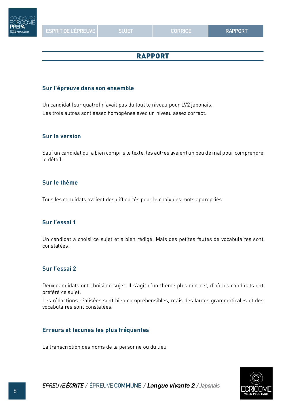 Concours Ecricome Prépa 2014 - Japonais LV2 (Corrigé)