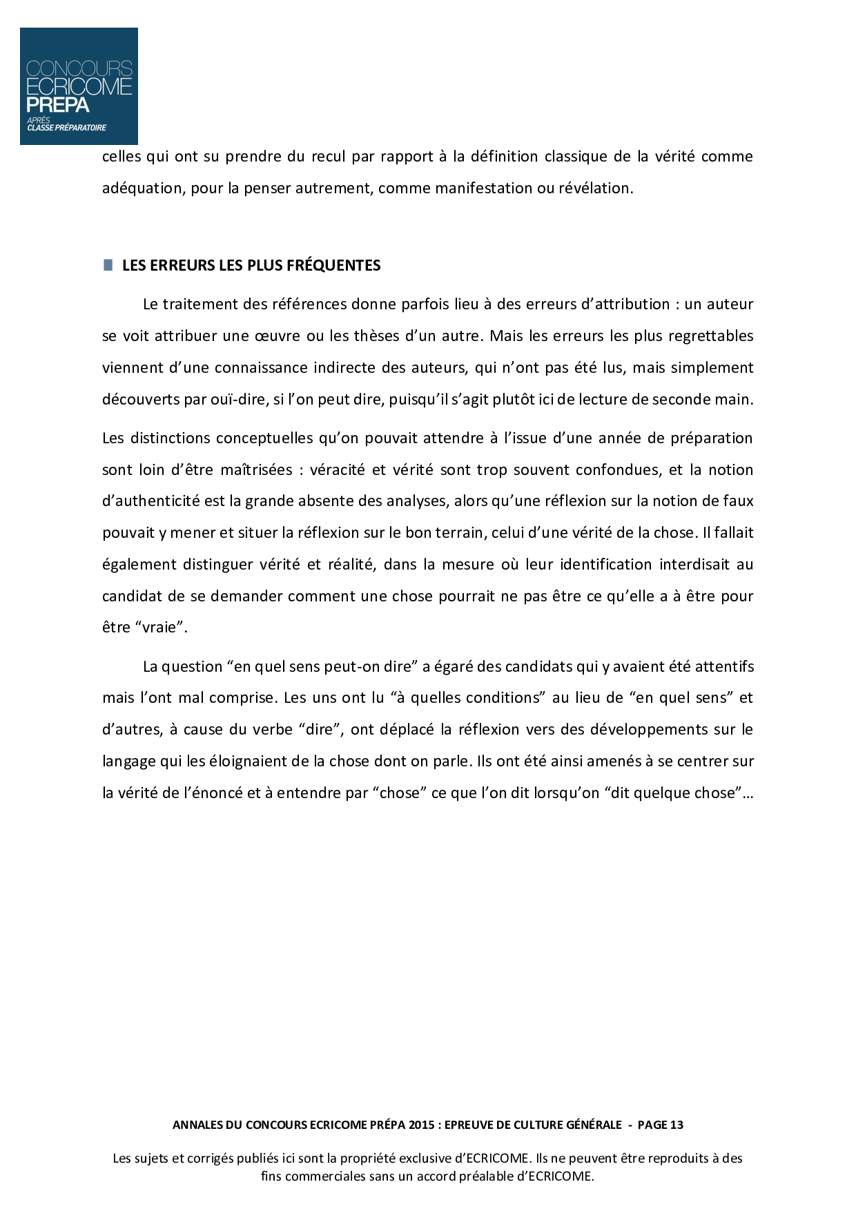 Concours Ecricome Prépa 2015 - Culture générale (Corrigé)