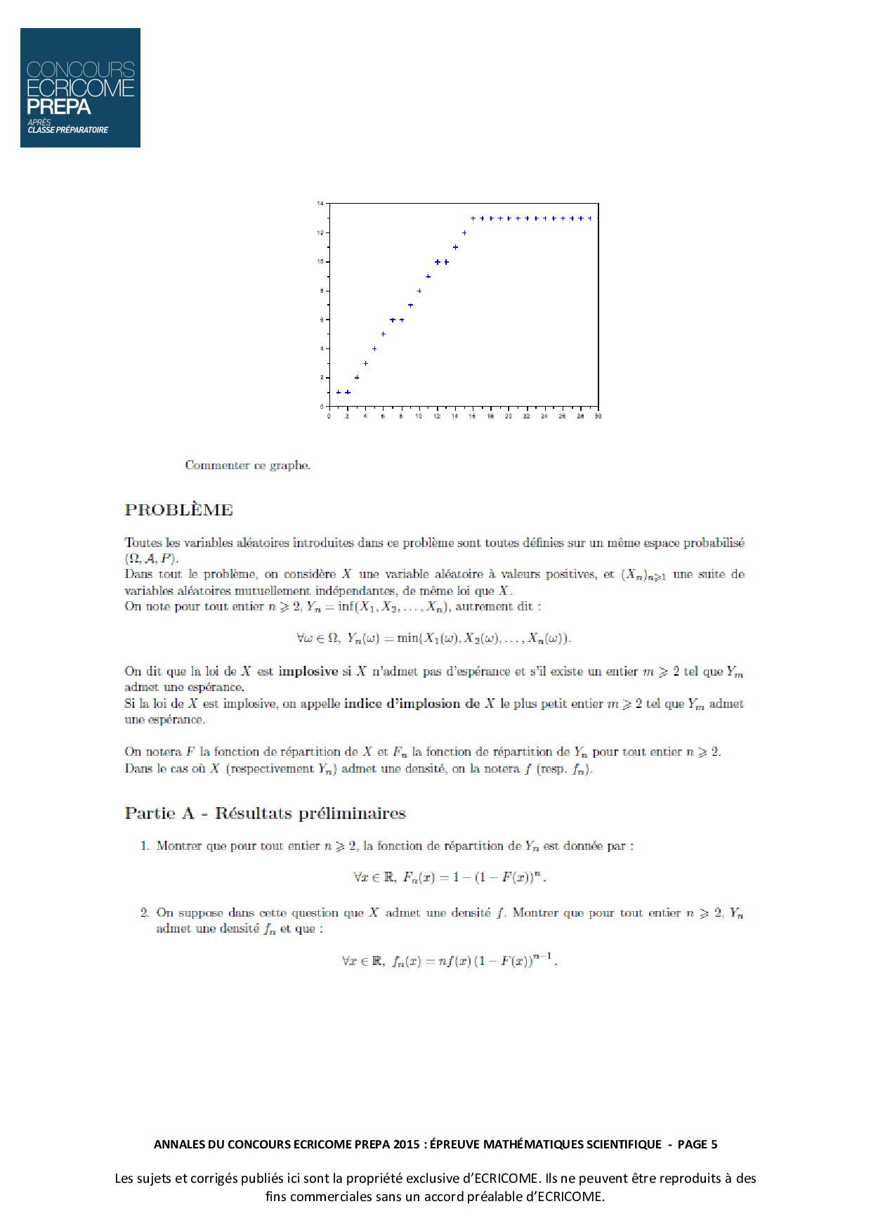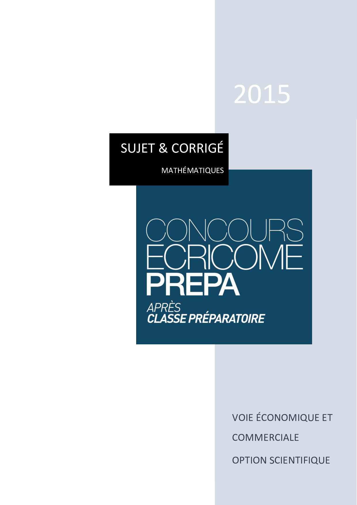 Concours Ecricome Prépa 2015 - Mathématiques (Option scientifique - Sujet)