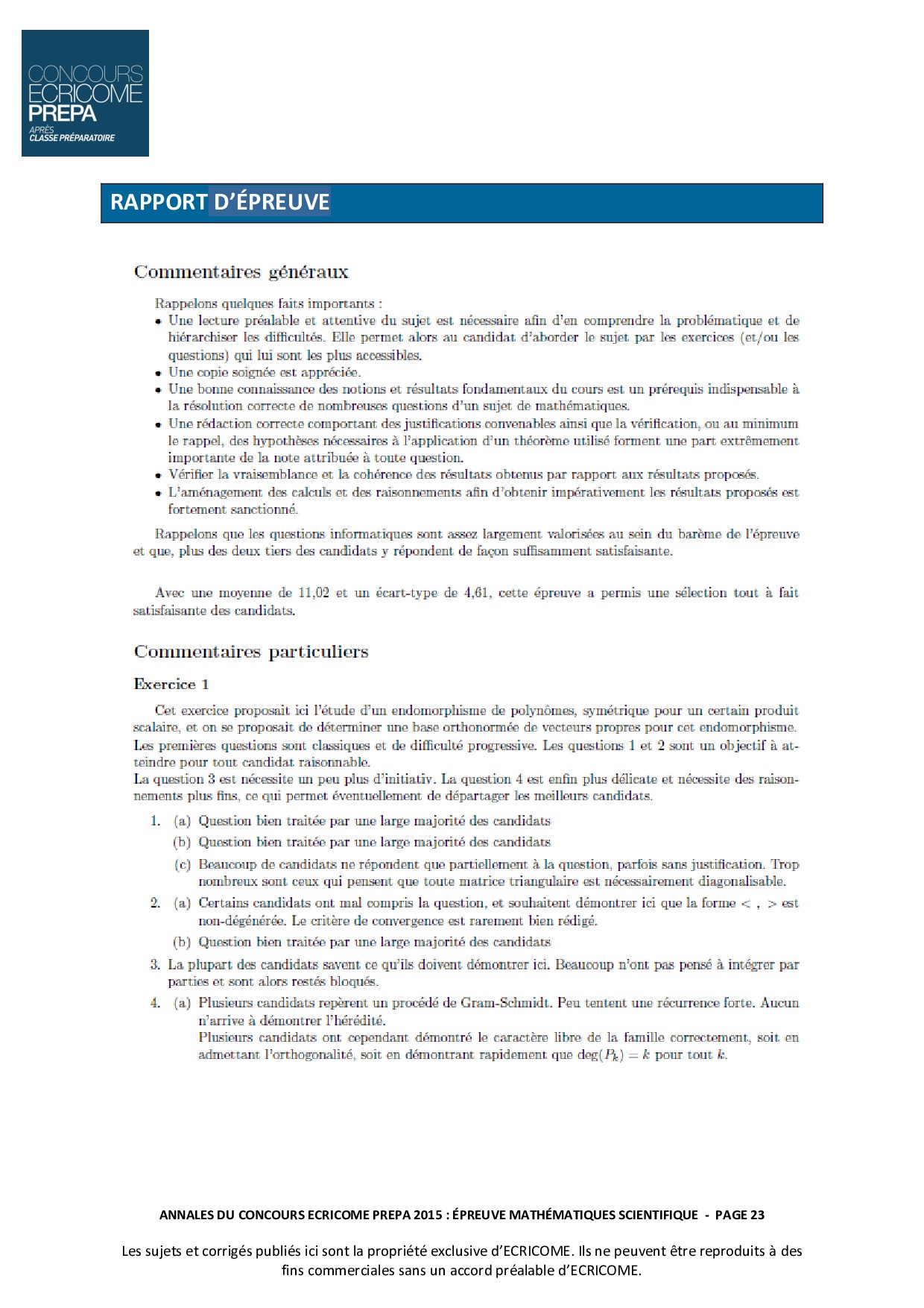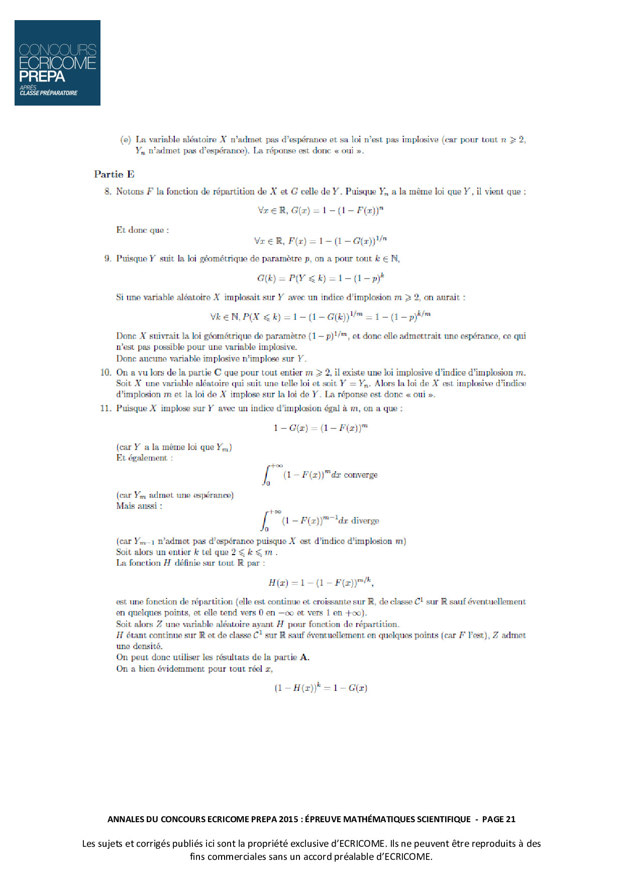 Concours Ecricome Prépa 2015 - Mathématiques (Option scientifique - Corrigé)