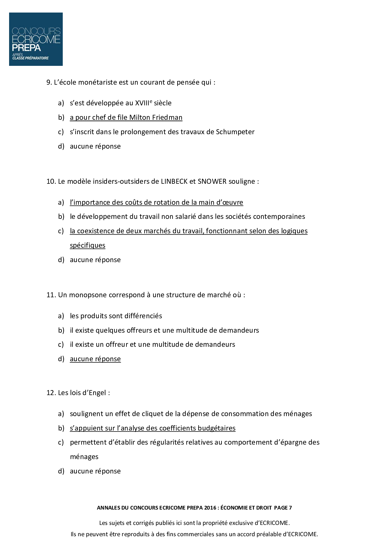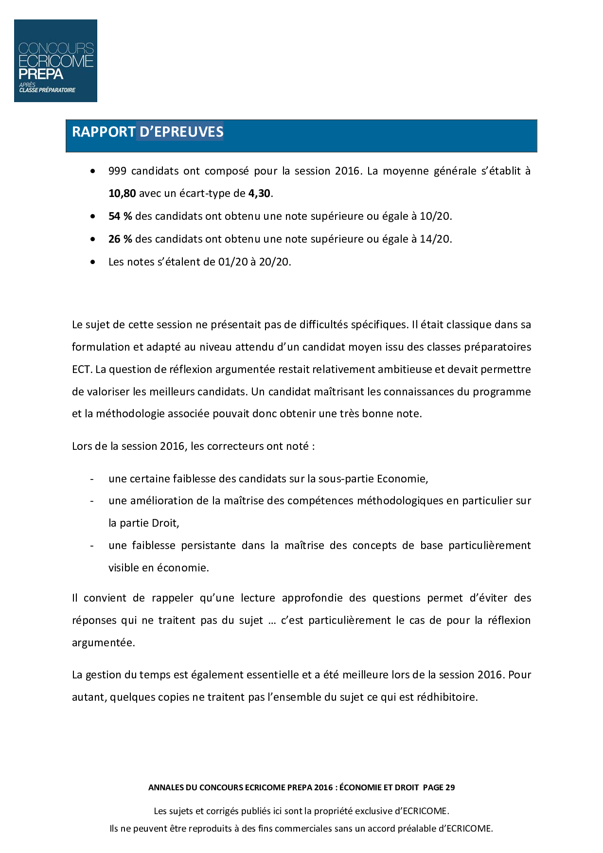 Concours Ecricome Prépa 2016 - Économie et droit (Corrigé)