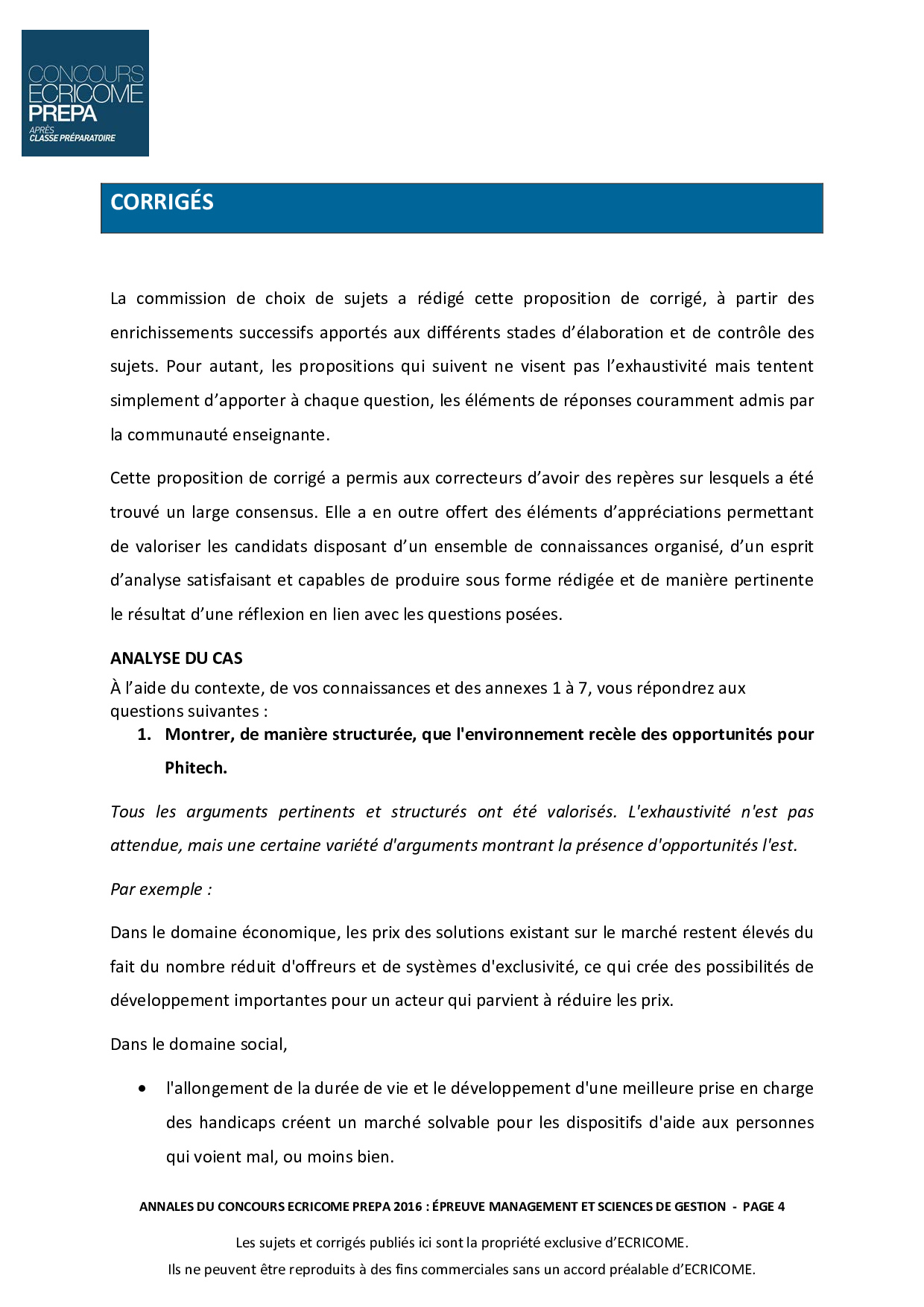 Concours Ecricome Prépa 2016 - Management et gestion (Corrigé)