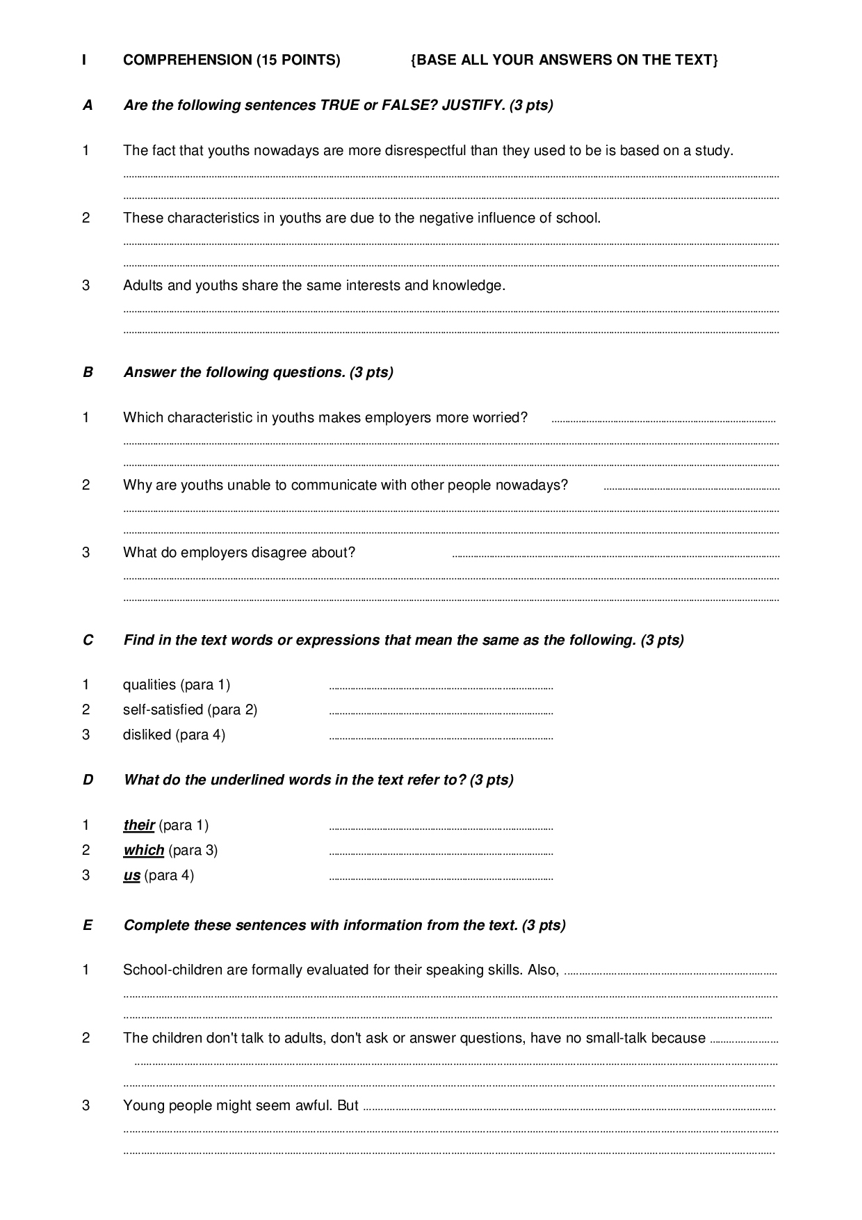 First term english tests