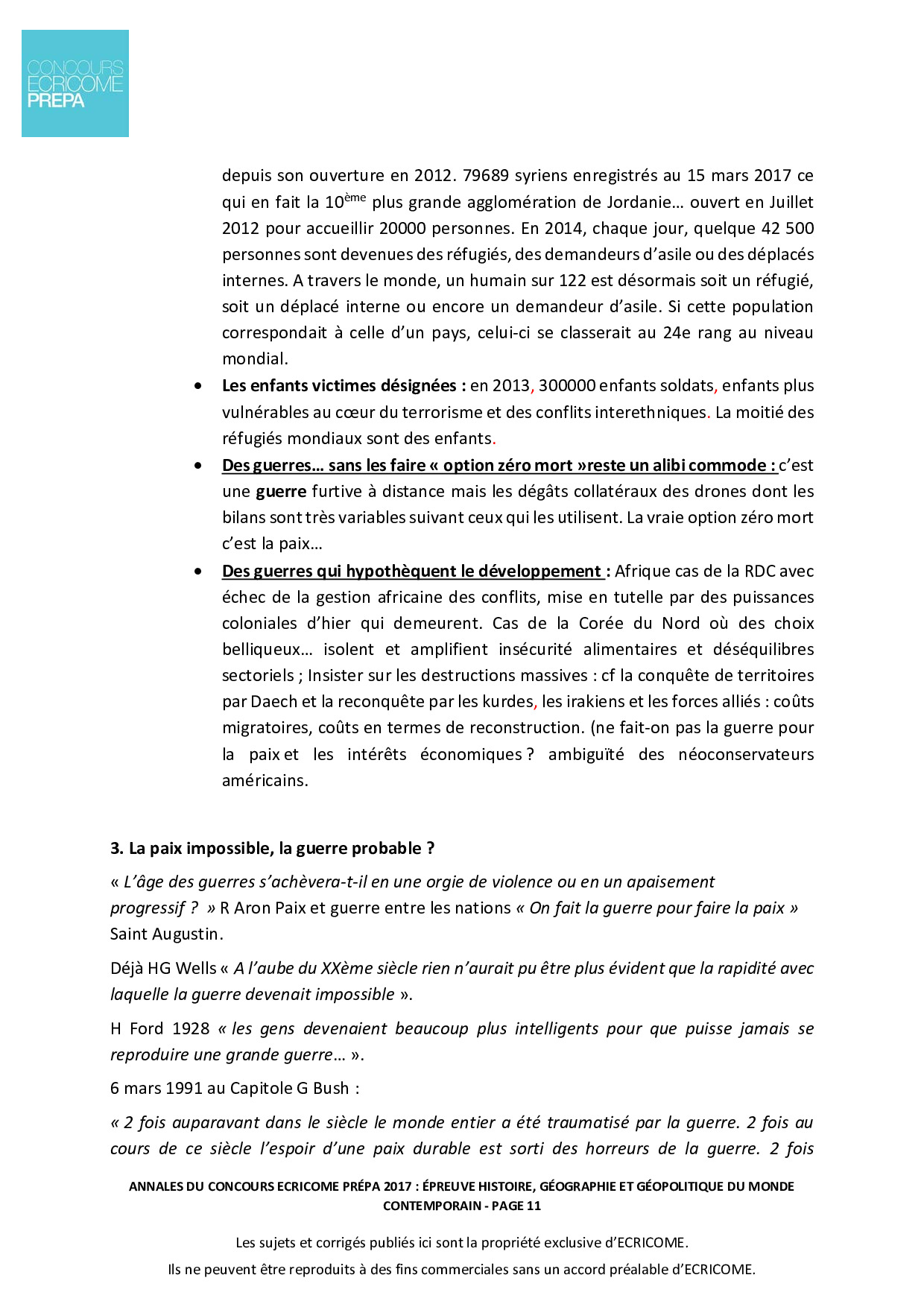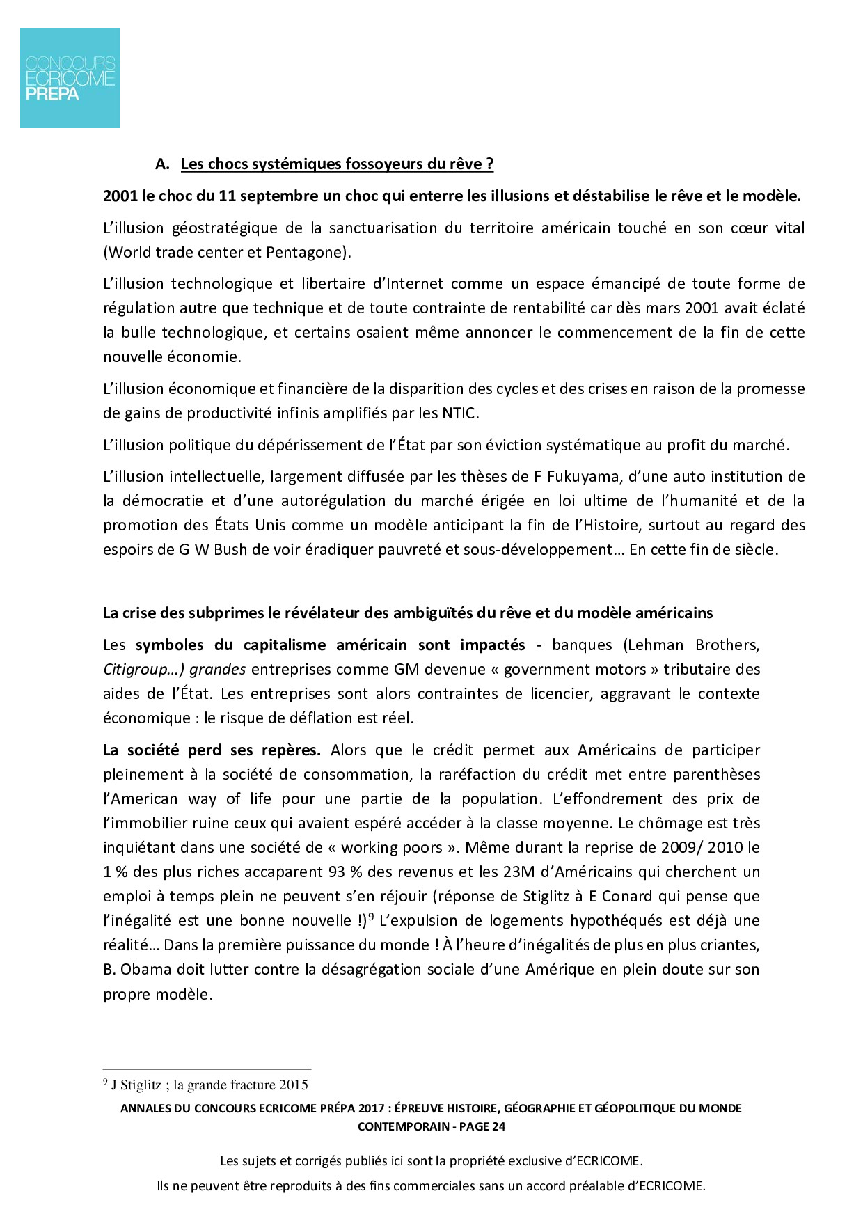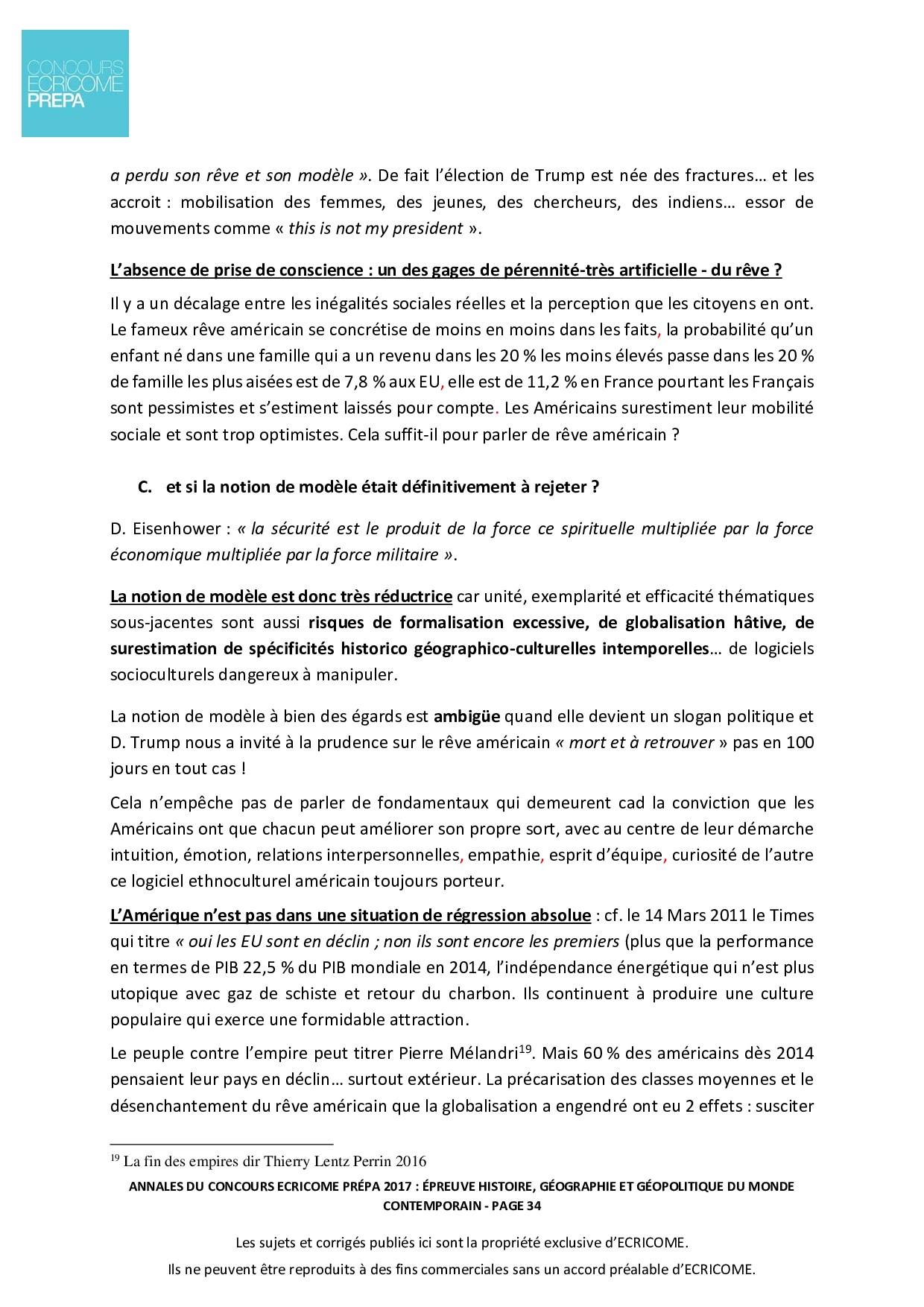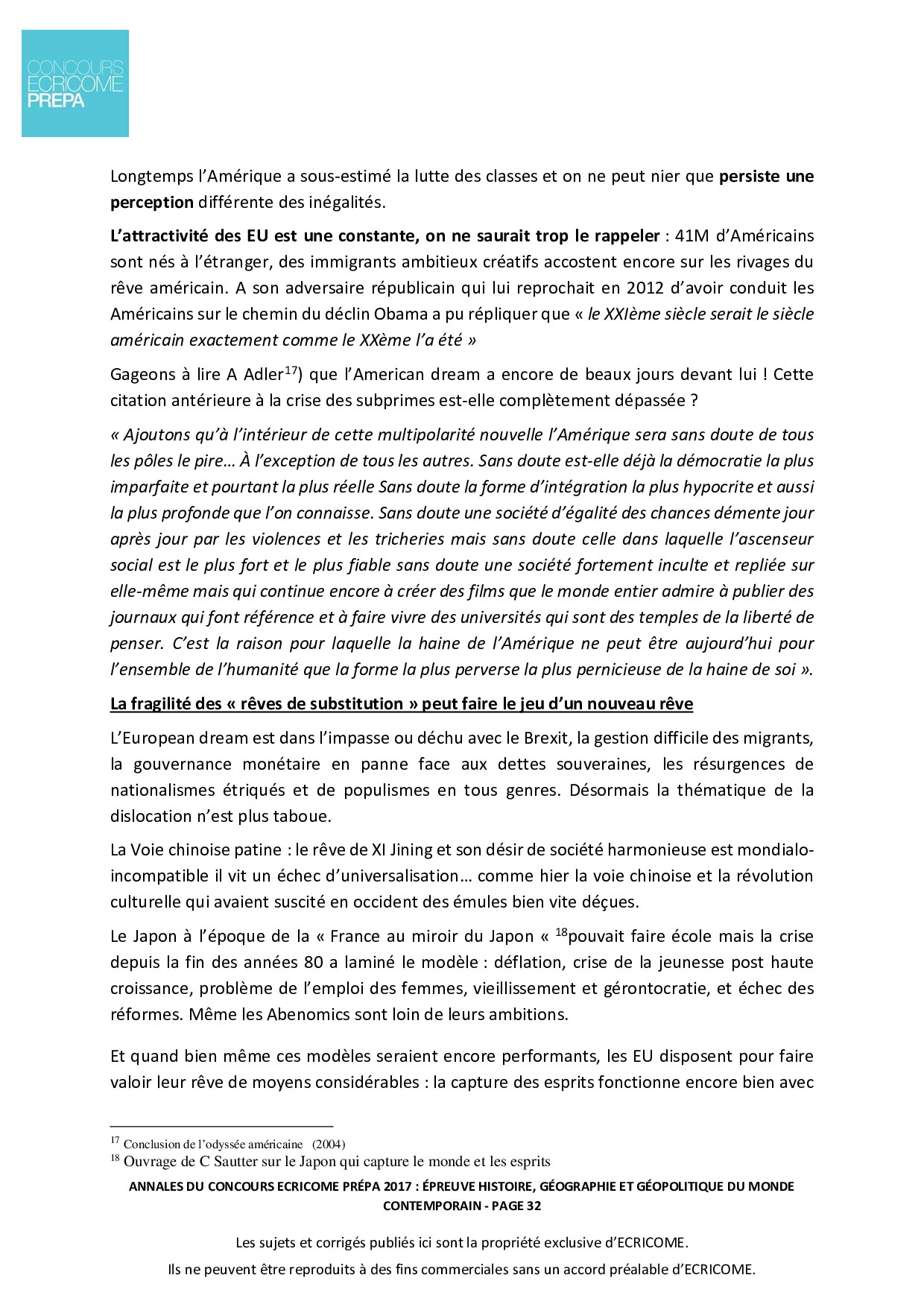 Concours Ecricome Prépa 2017 - Histoire, géographie et géopolitique du monde contemporain (Corrigé)