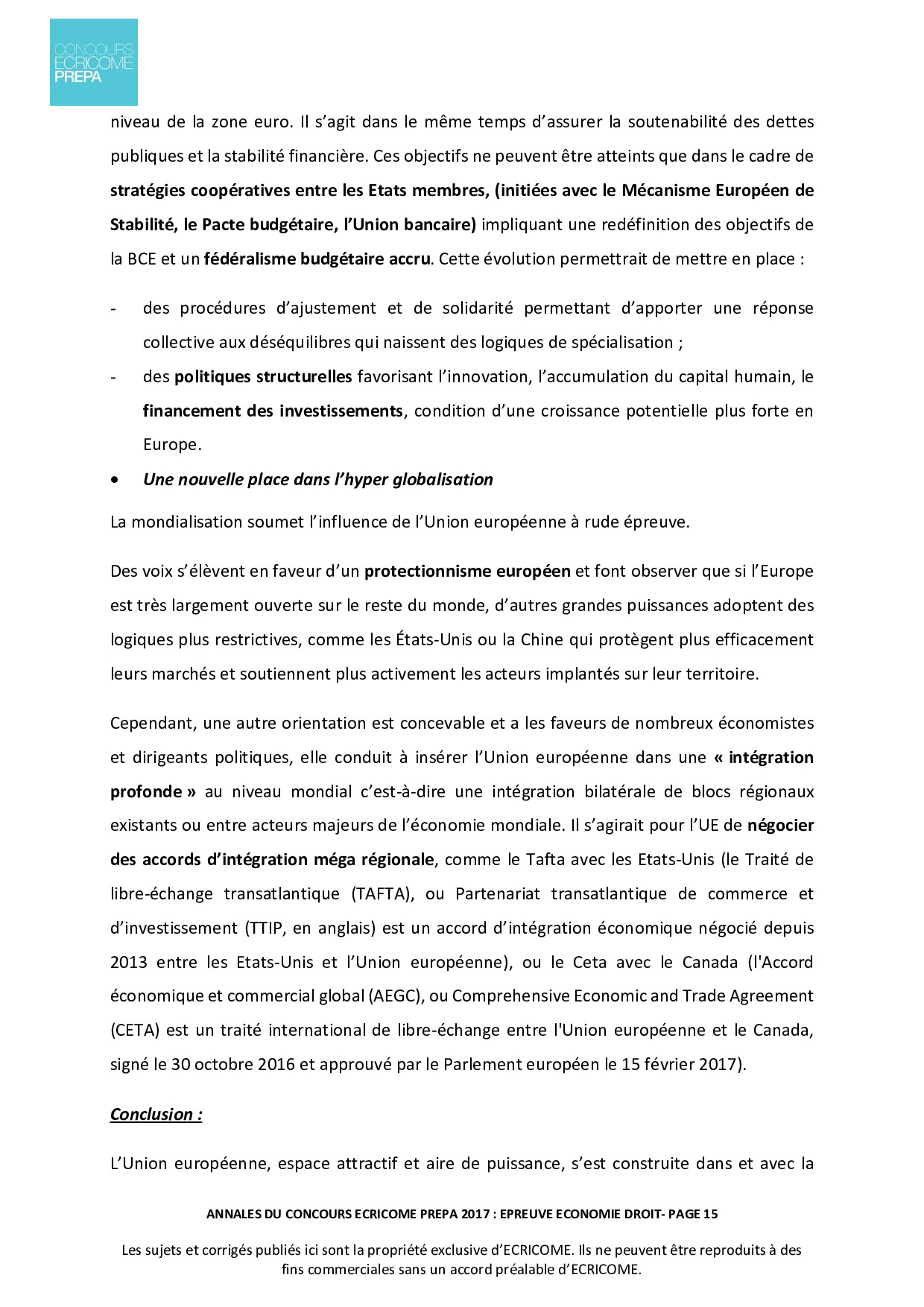 Concours Ecricome Prépa 2017 - Économie et droit (Corrigé)