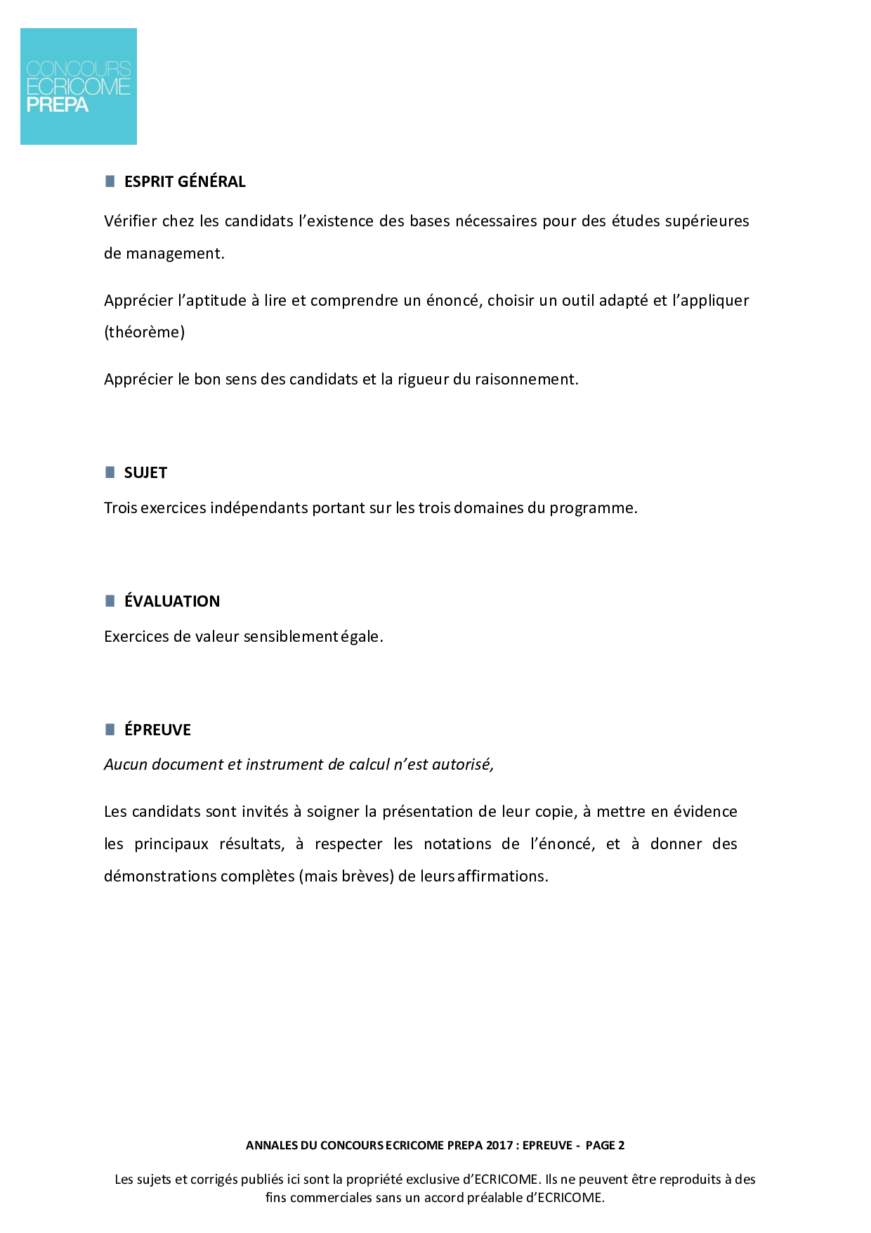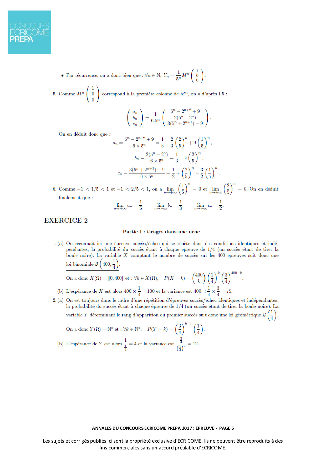 Concours Ecricome Prépa 2017 - Mathématiques (Option technologique - Corrigé)