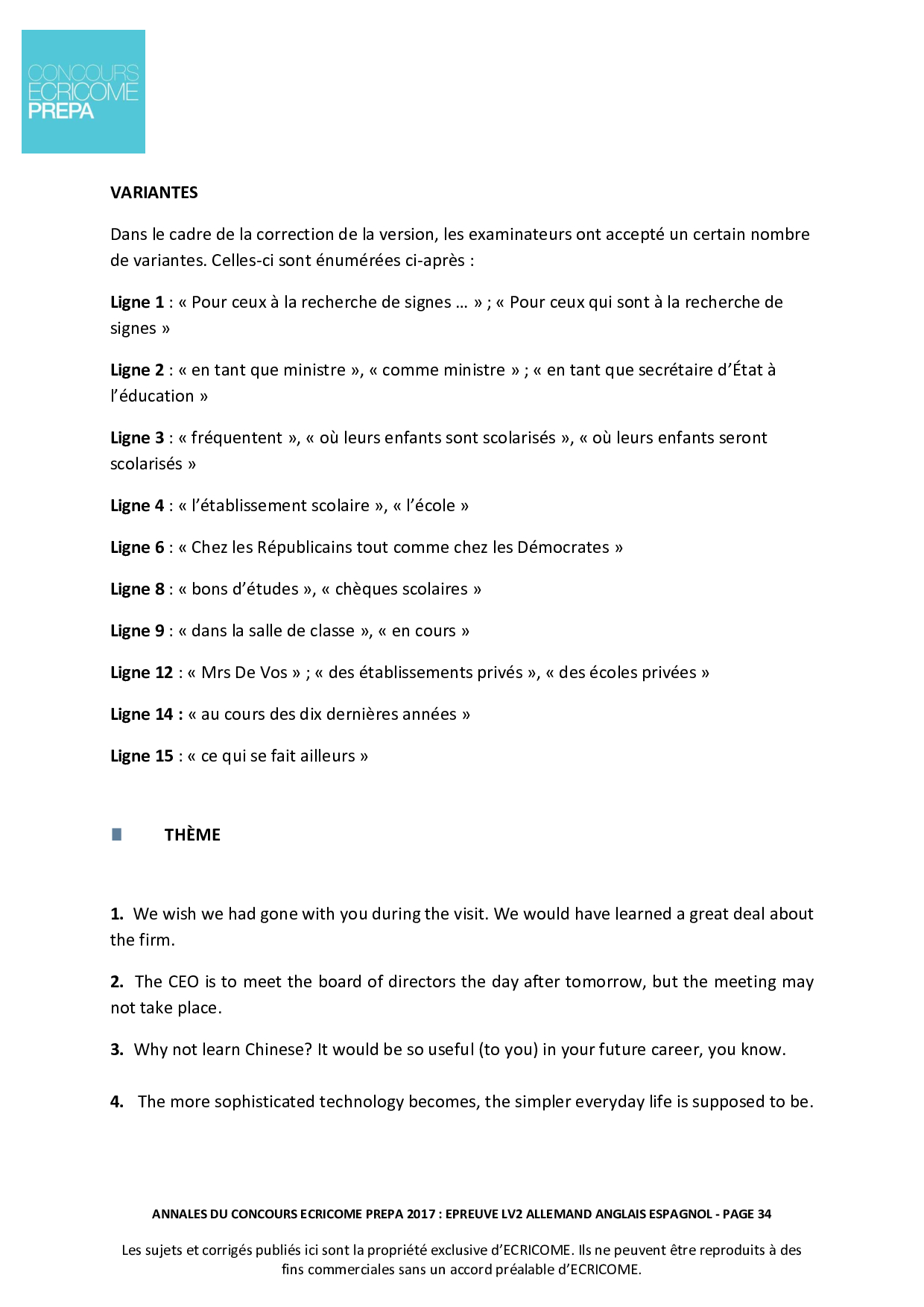 Concours Ecricome Prépa 2017 - Anglais LV2 (Corrigé)