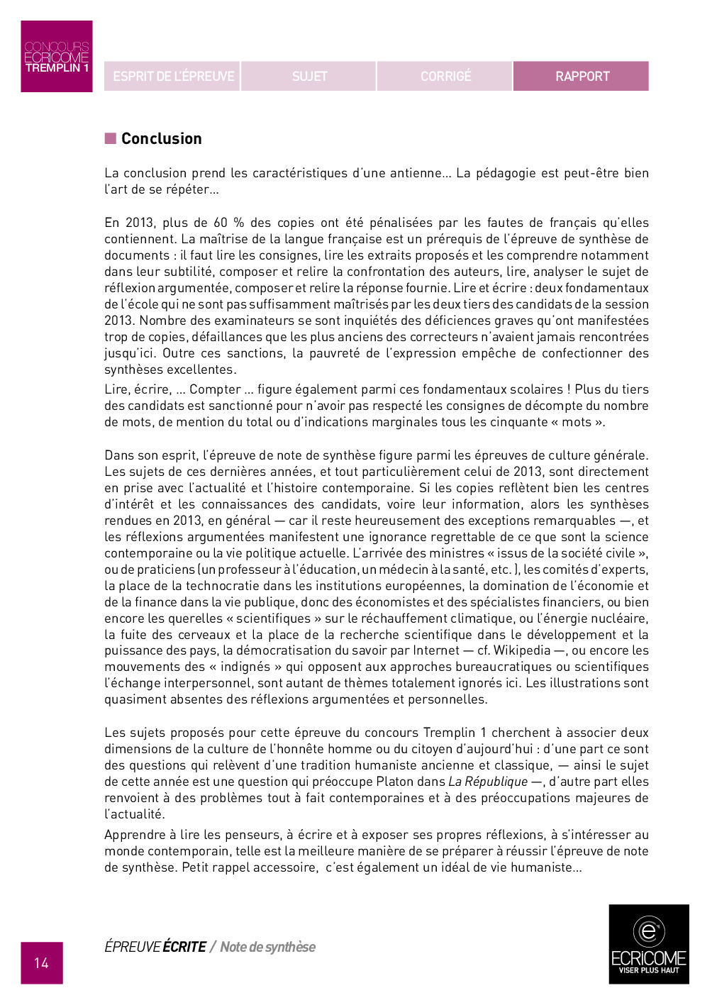 Concours Ecricome Tremplin 1 2013 - Note de synthèse (Corrigé)