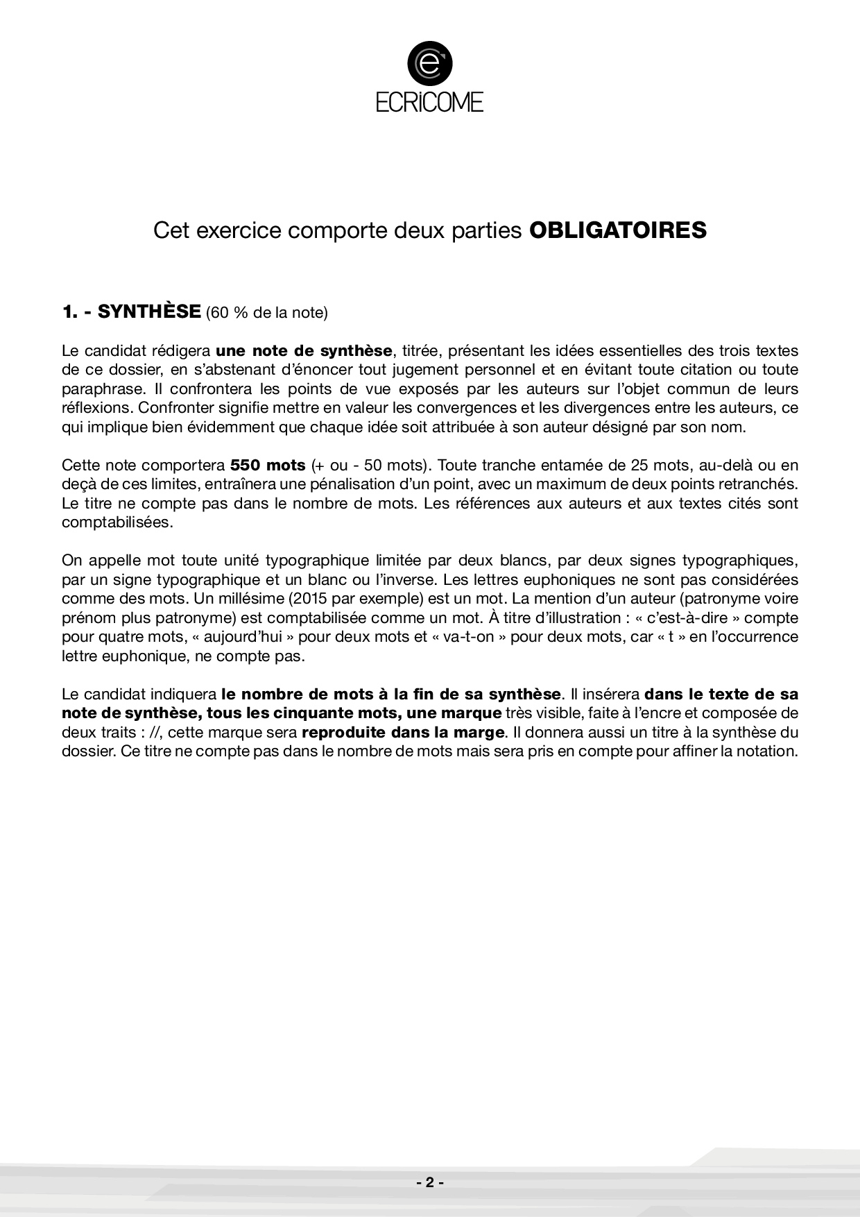 Concours Ecricome Tremplin 1&2 2016 - Note de synthèse (Sujet)
