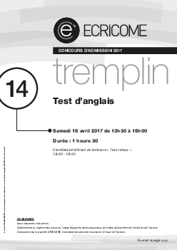 Concours Ecricome Tremplin 1&2 2017 - Anglais (Sujet)