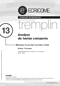 Concours Ecricome Tremplin 2 2017 - Analyse de textes comparés (Sujet)