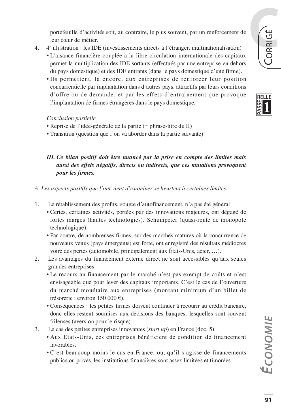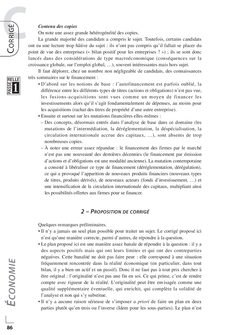Concours Passerelle 1 2008 - Économie (Corrigé)