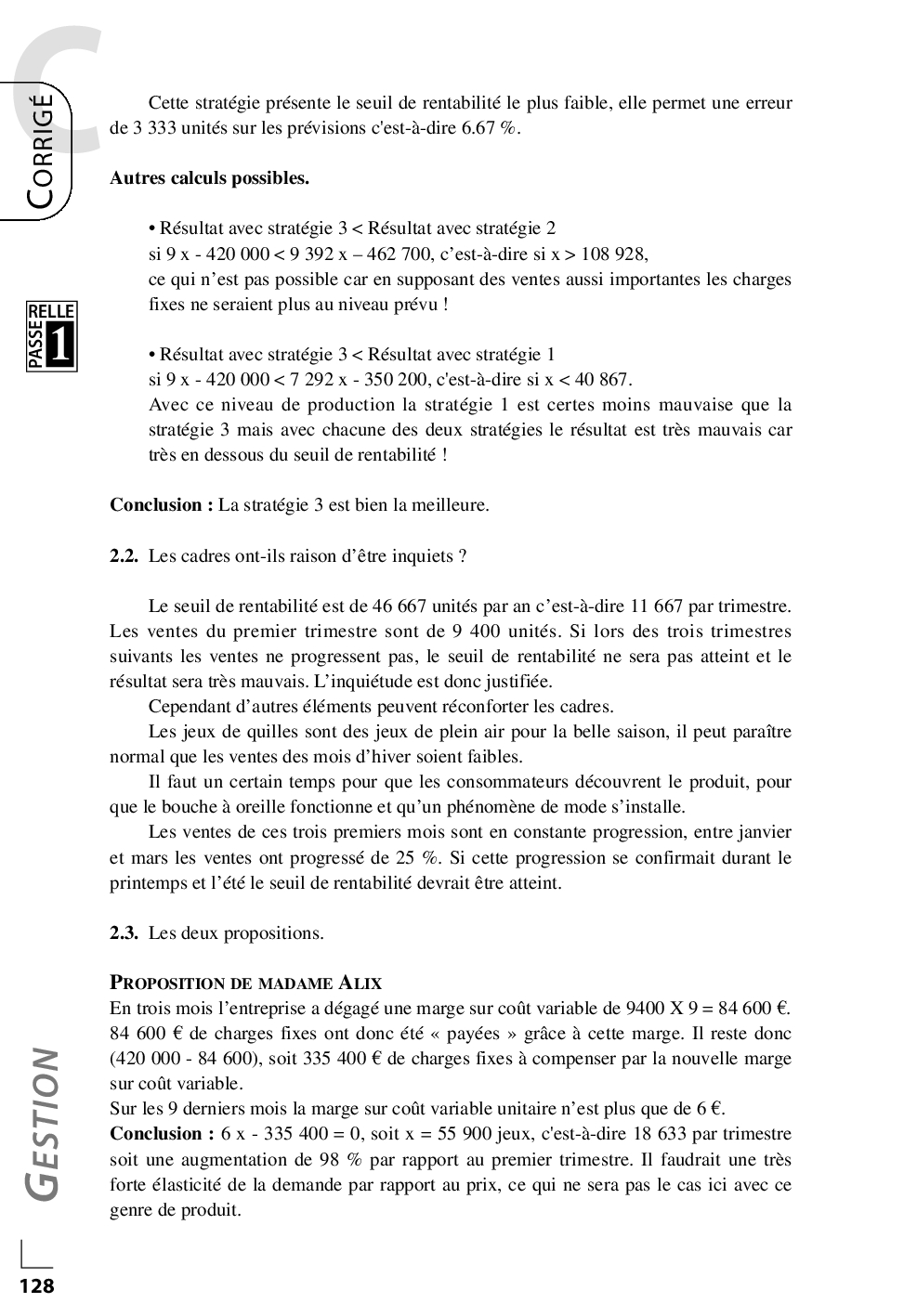 Concours Passerelle 1 2009 - Gestion (Corrigé)