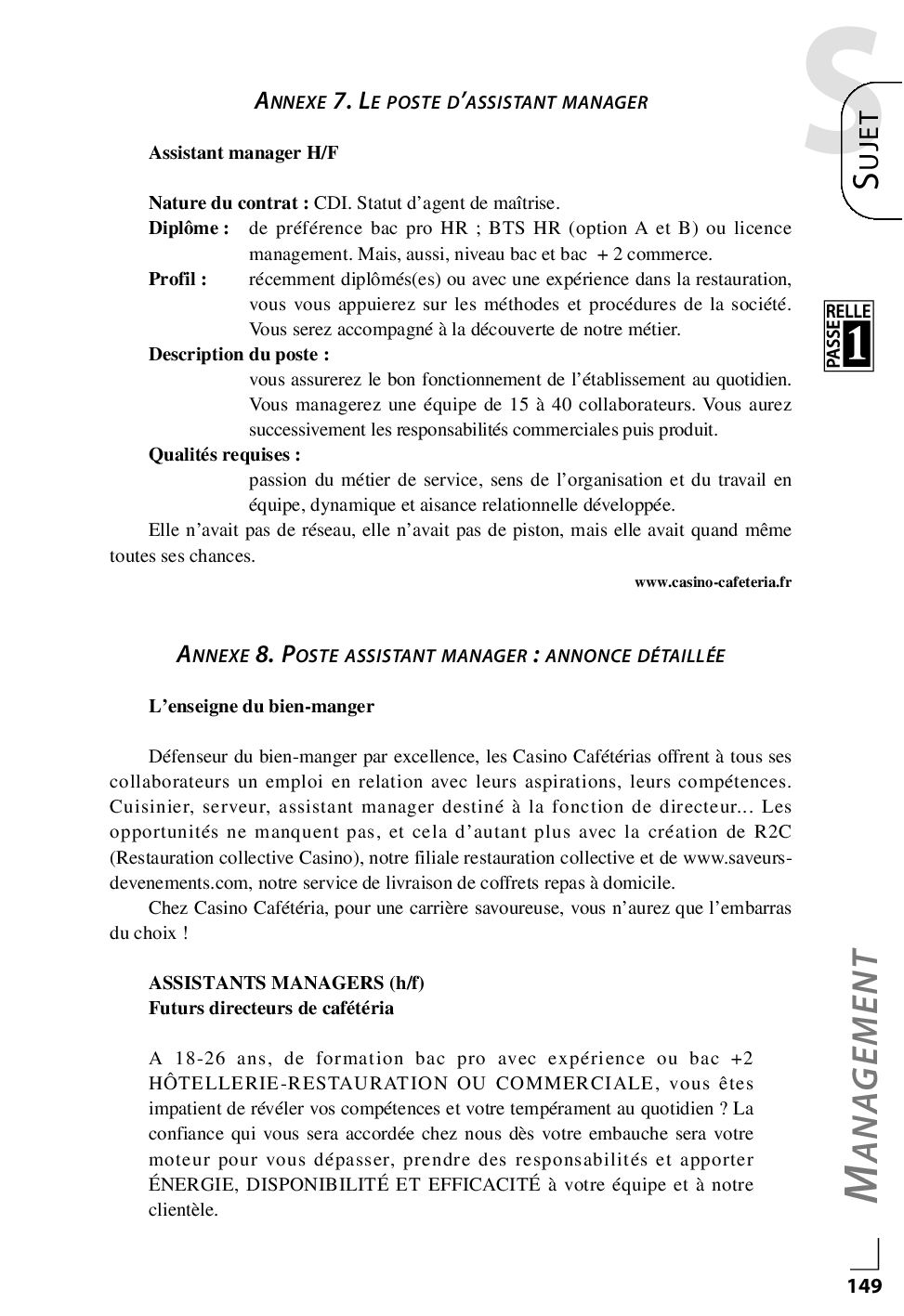 Concours Passerelle 1 2009 - Management d’une entreprise d’hôtellerie-restauration (Sujet)