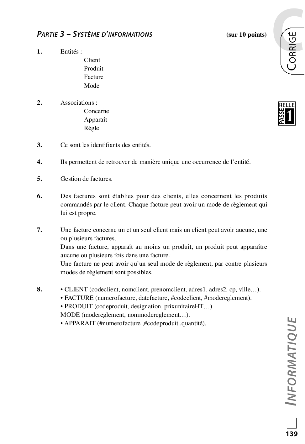 Concours Passerelle 1 2010 - Informatique (Corrigé)