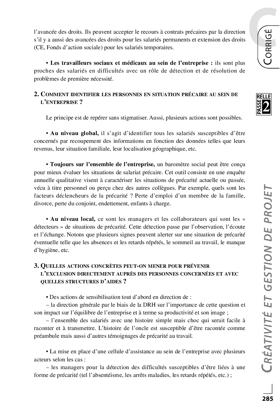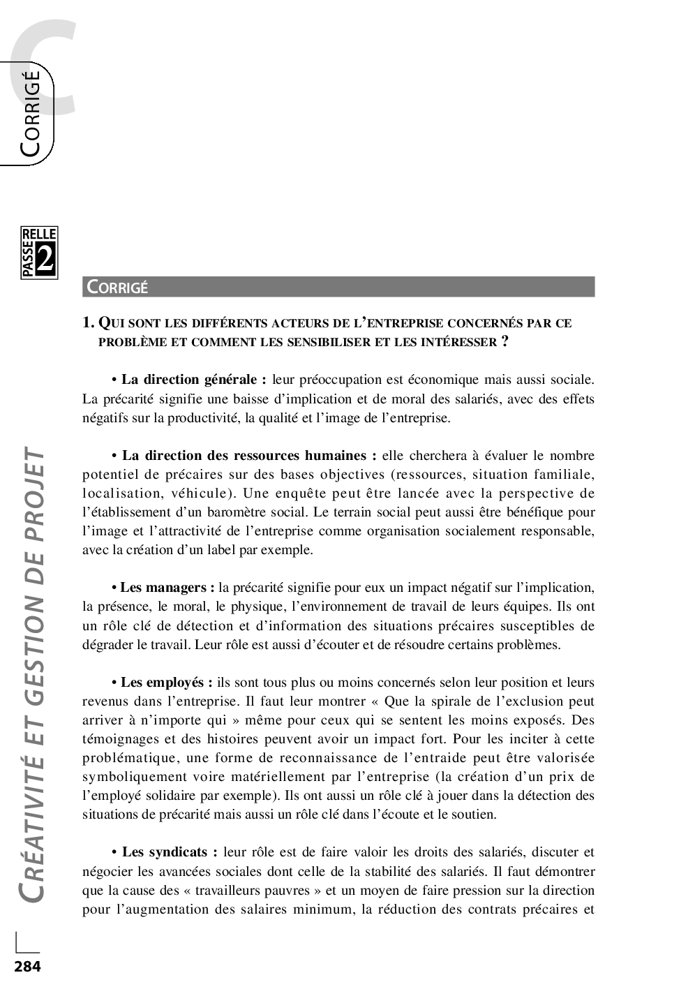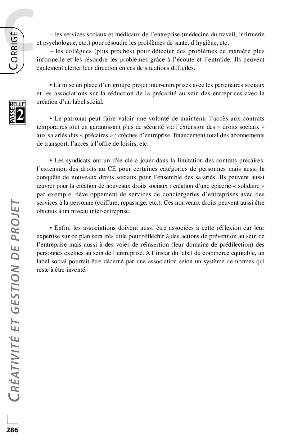 Concours Passerelle 2 2010 - Créativité et gestion de projet (Corrigé)