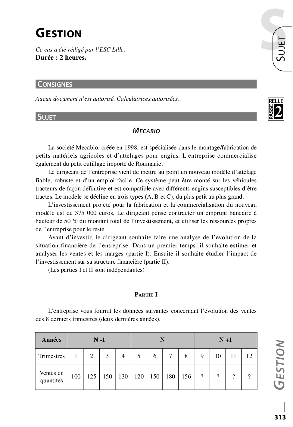 Concours Passerelle 2 2010 - Gestion (Sujet)