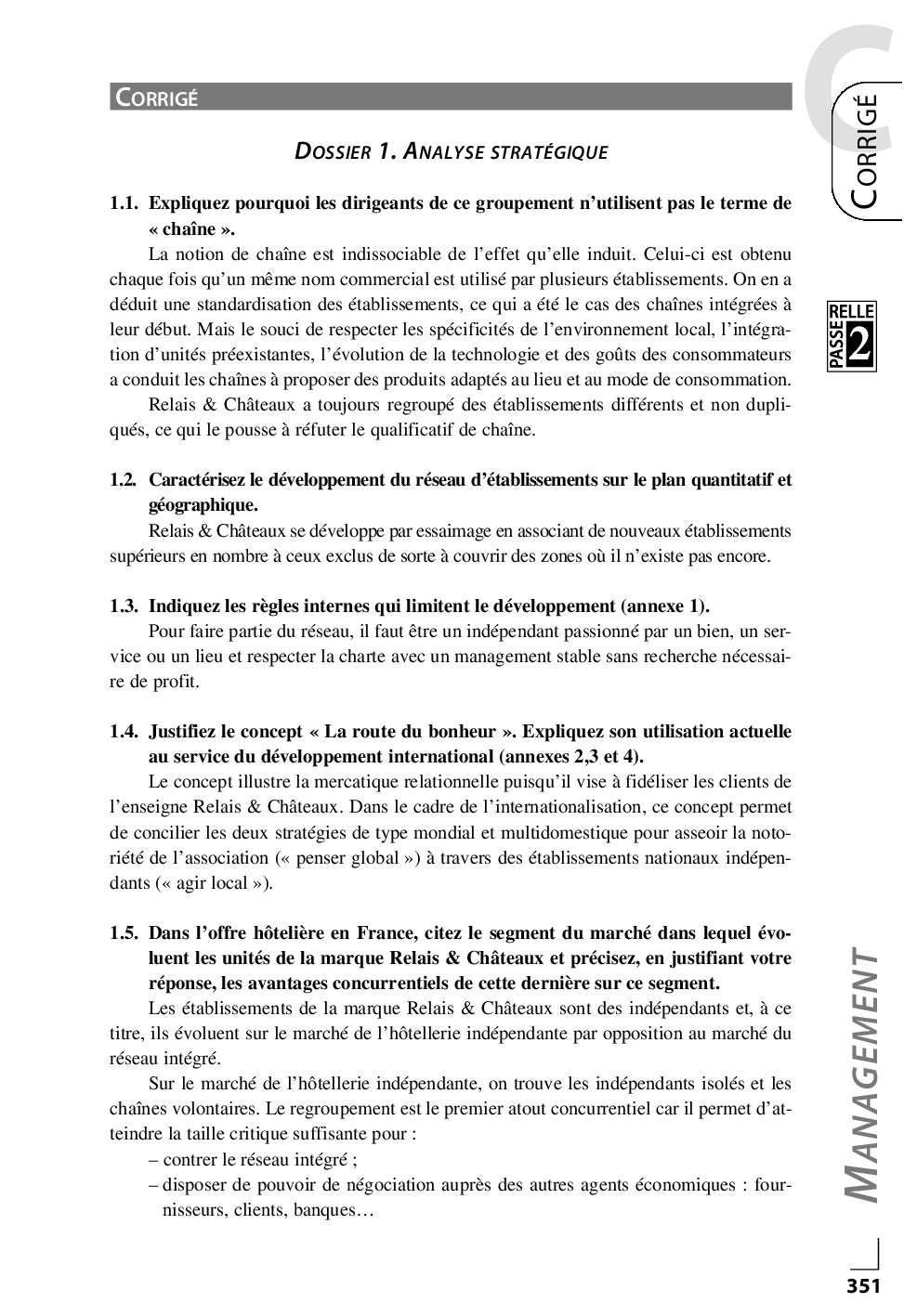 Concours Passerelle 2 2010 - Management d’une entreprise d’hôtellerie-restauration (Corrigé)