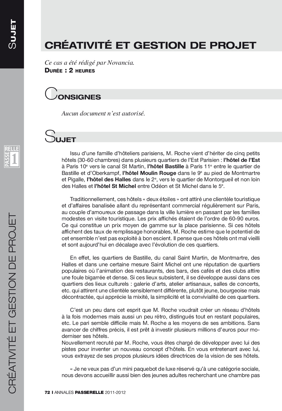 Concours Passerelle 1 2011 - Créativité et gestion de projet (Sujet)