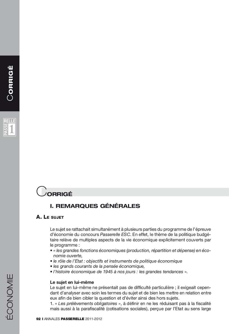 Concours Passerelle 1 2011 - Économie (Corrigé)