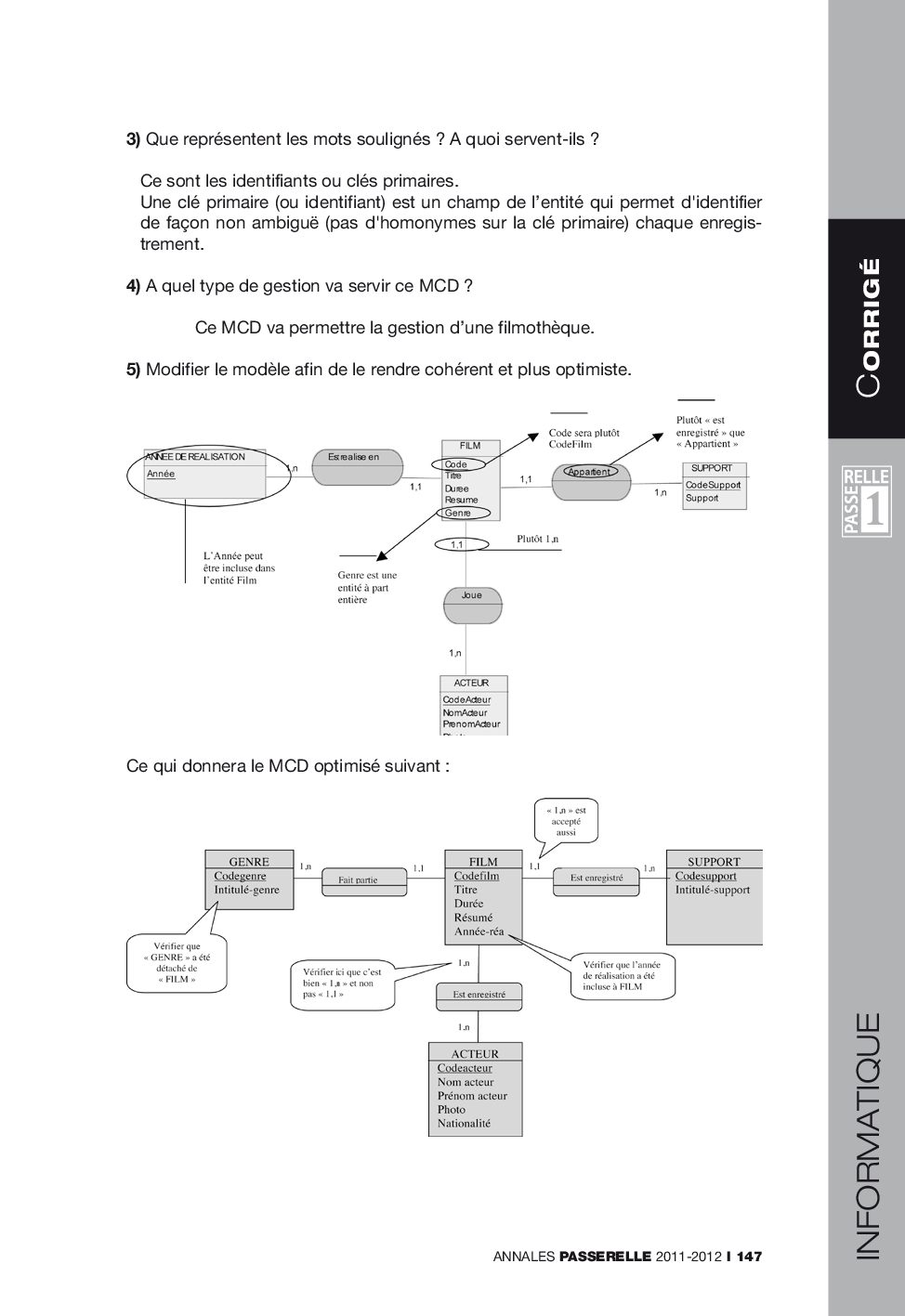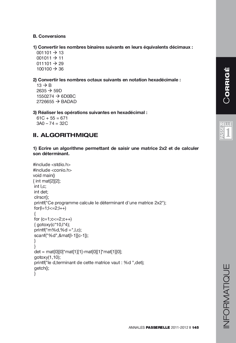 Concours Passerelle 1 2011 - Informatique (Corrigé)