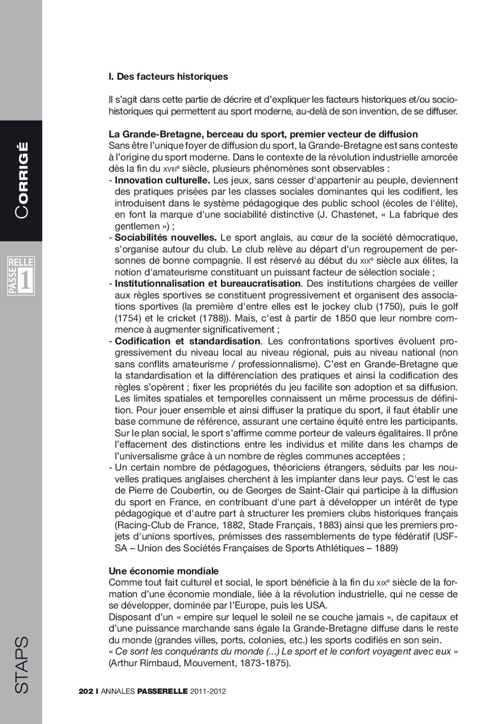 Concours Passerelle 1 2011 - STAPS (Corrigé)