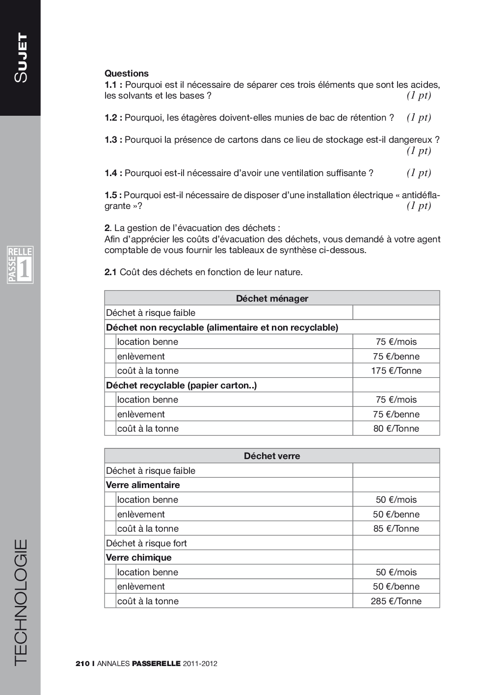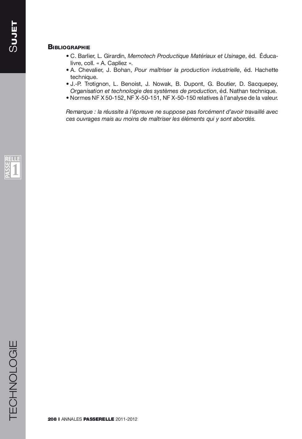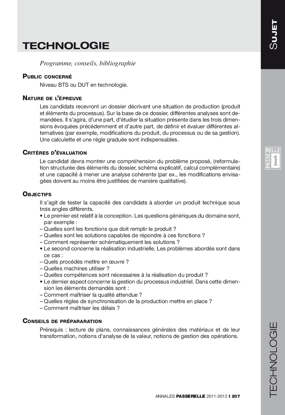 Concours Passerelle 1 2011 - Technologie (Sujet)