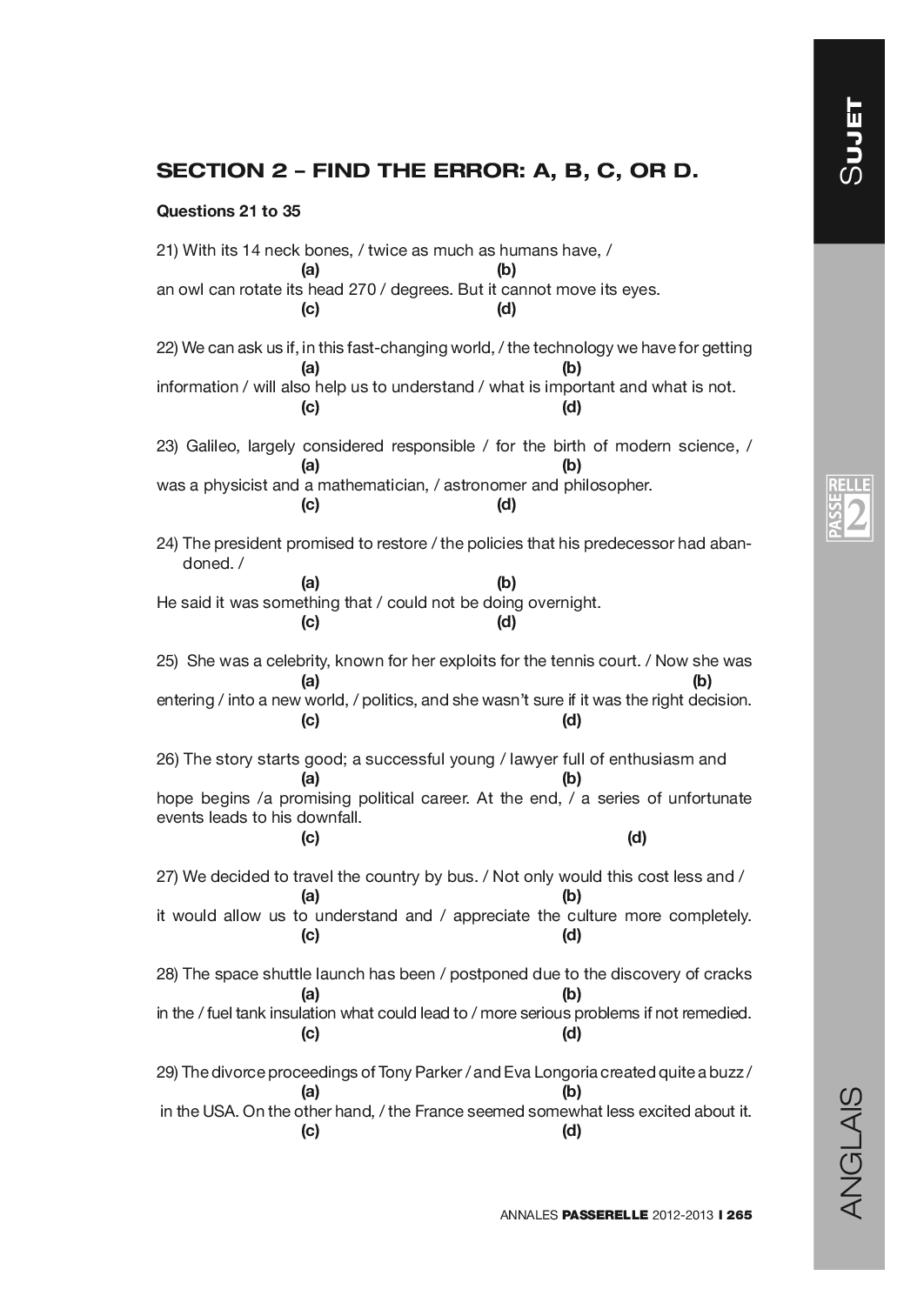 Concours Passerelle 2 2012 - Anglais (Sujet)