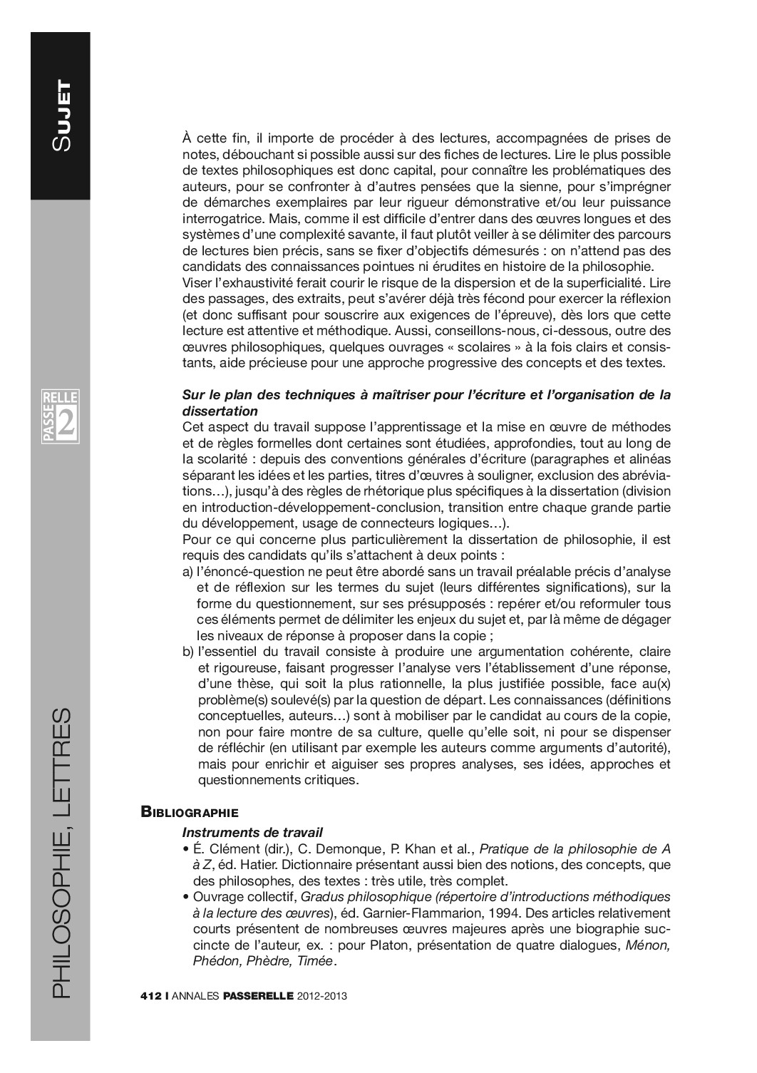 Concours Passerelle 2 2012 - Philosophie, Lettres et Sciences humaines (Sujet)