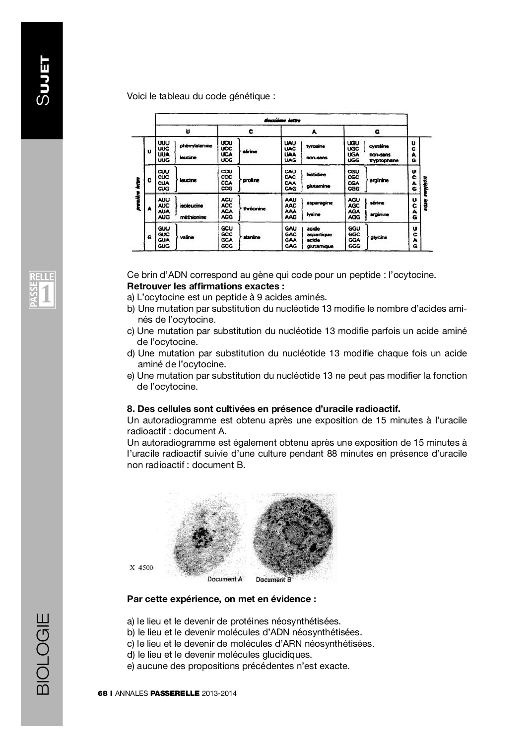 Concours Passerelle 1 2013 - Biologie (Sujet)