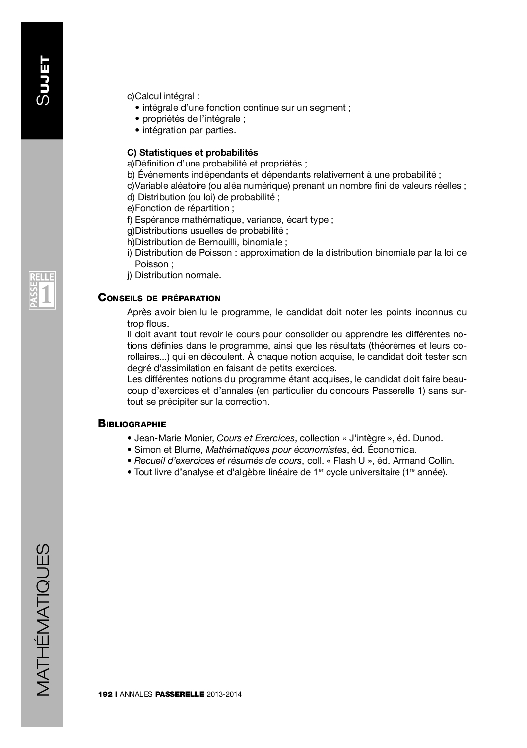 Concours Passerelle 1 2013 - Mathématiques (Sujet)