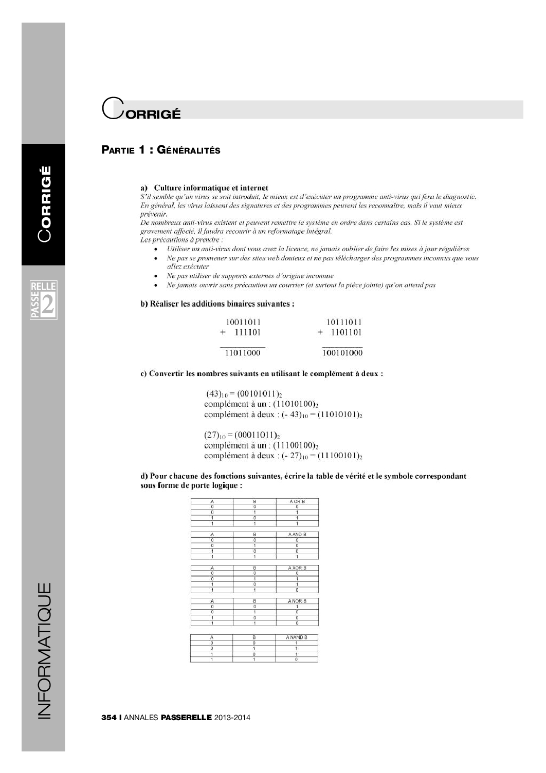 Concours Passerelle 2 2013 - Informatique (Corrigé)
