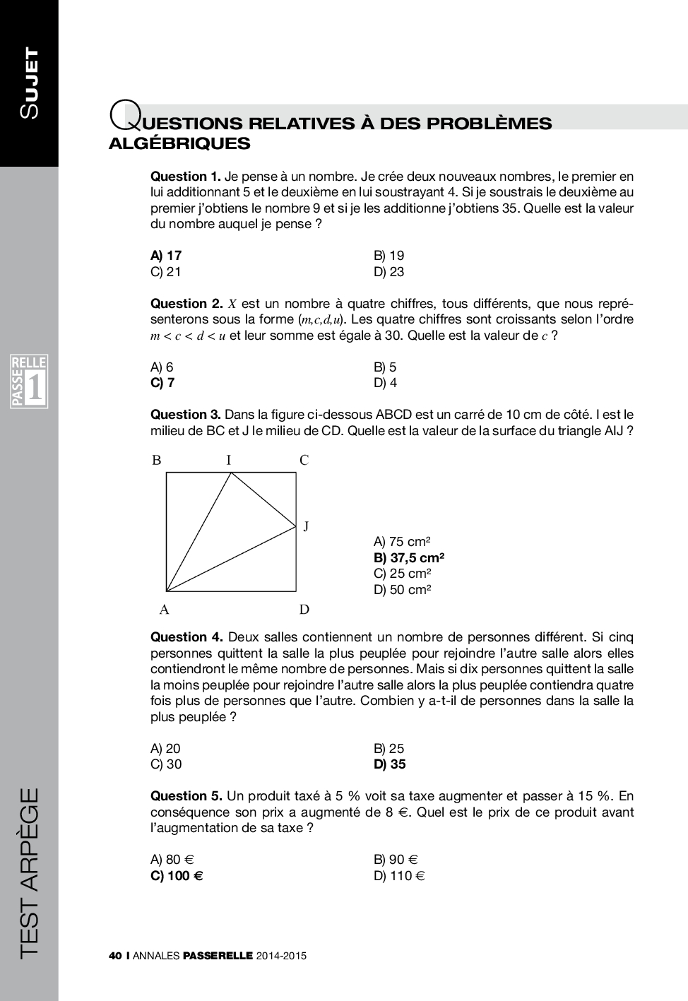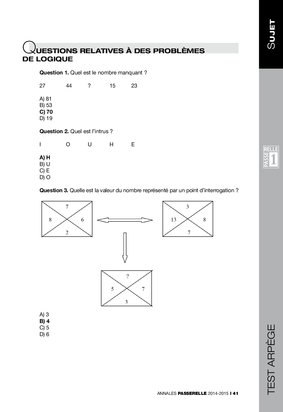 Concours Passerelle 1 2014 - Test Arpège