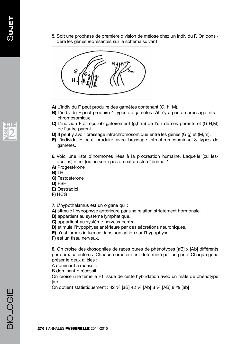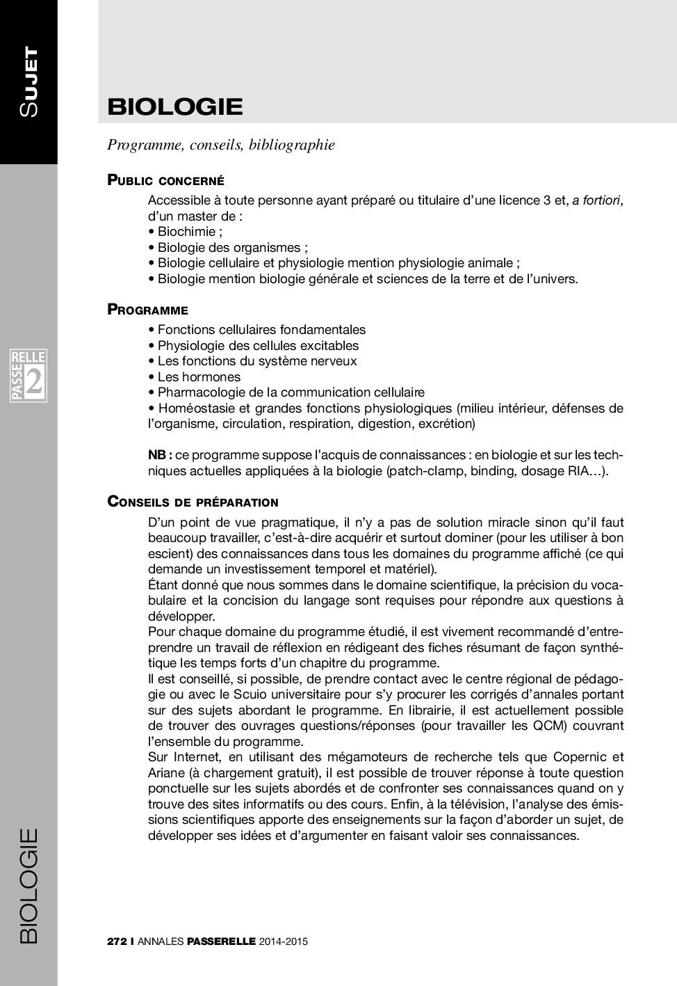Concours Passerelle 2 2014 - Biologie (Sujet)