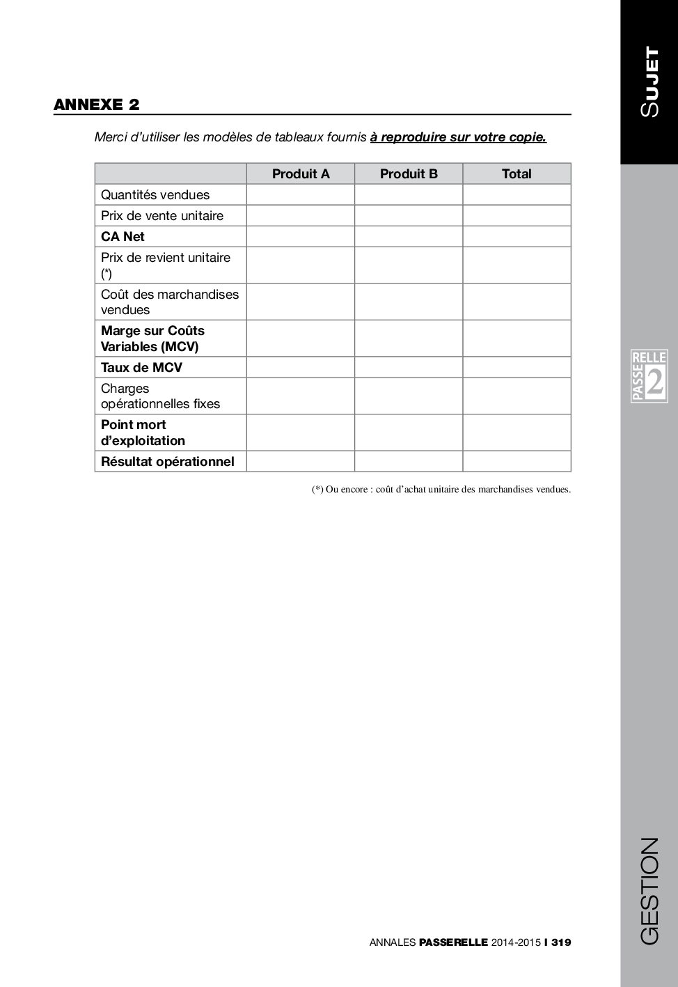 Concours Passerelle 2 2014 - Gestion (Sujet)