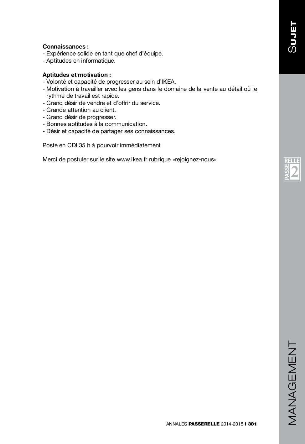 Concours Passerelle 2 2014 - Management d’une entreprise d’hôtellerie-restauration (Sujet)