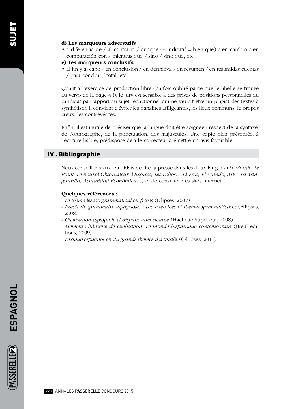 Concours Passerelle 2 2015 - Espagnol (Sujet)