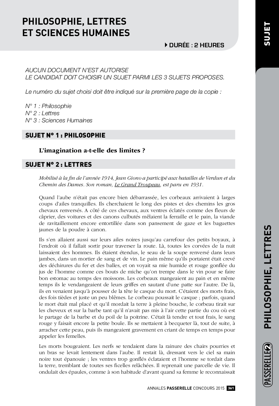 Concours Passerelle 2 2015 - Philosophie, Lettres et Sciences humaines (Sujet)