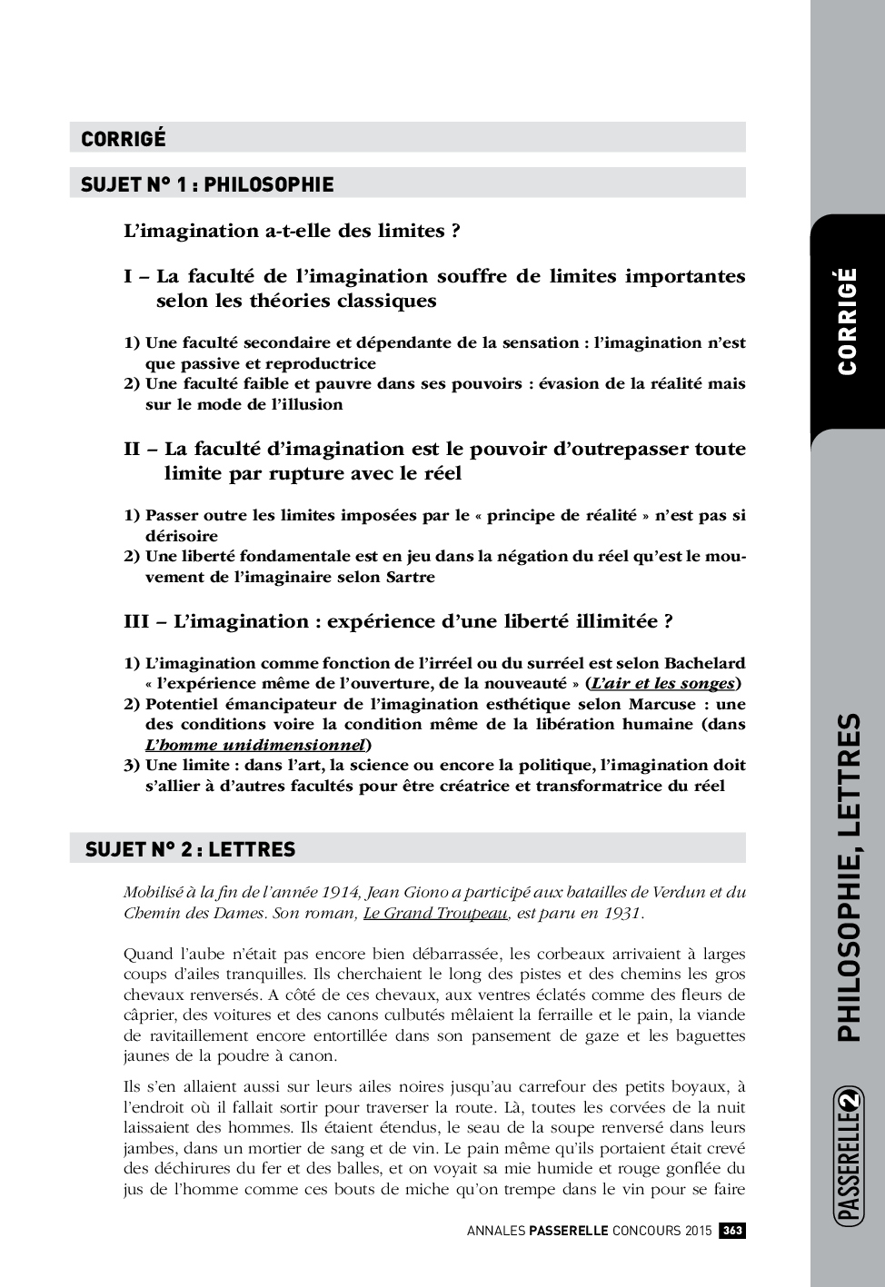 Concours Passerelle 2 2015 - Philosophie, Lettres et Sciences humaines (Corrigé)