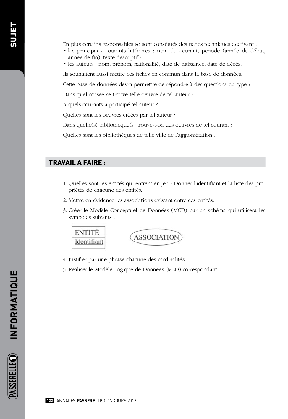 Concours Passerelle 1 2016 - Informatique (Sujet)