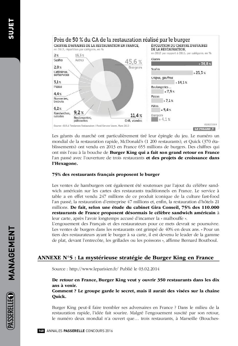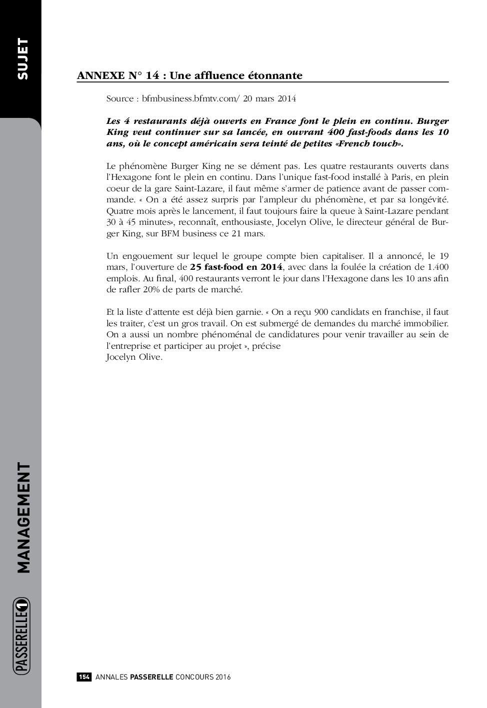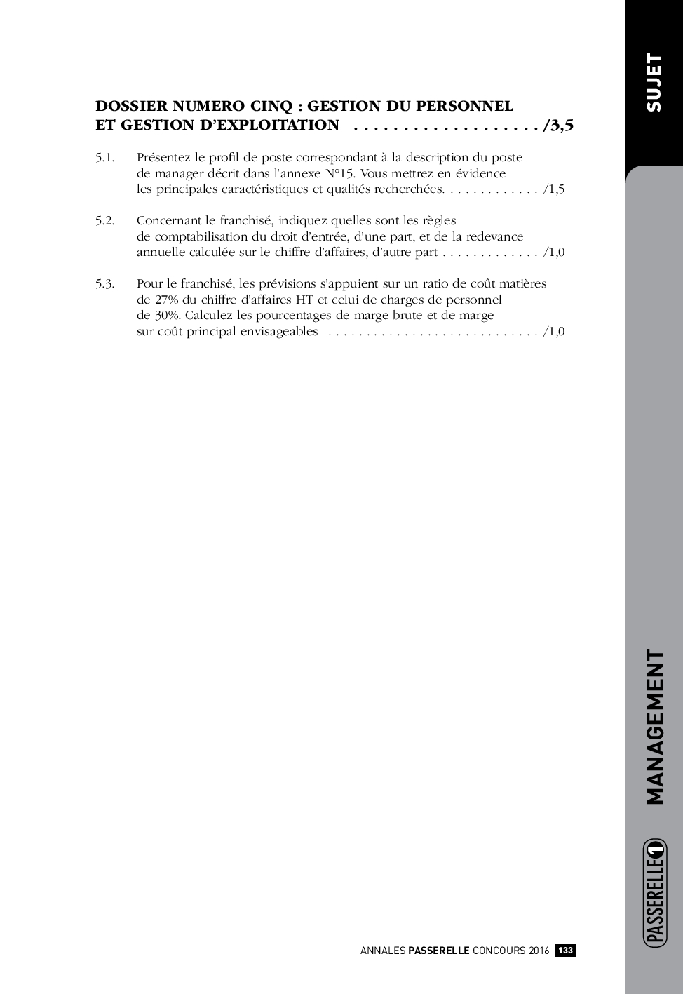 Concours Passerelle 1 2016 - Management d’une entreprise d’hôtellerie-restauration (Sujet)