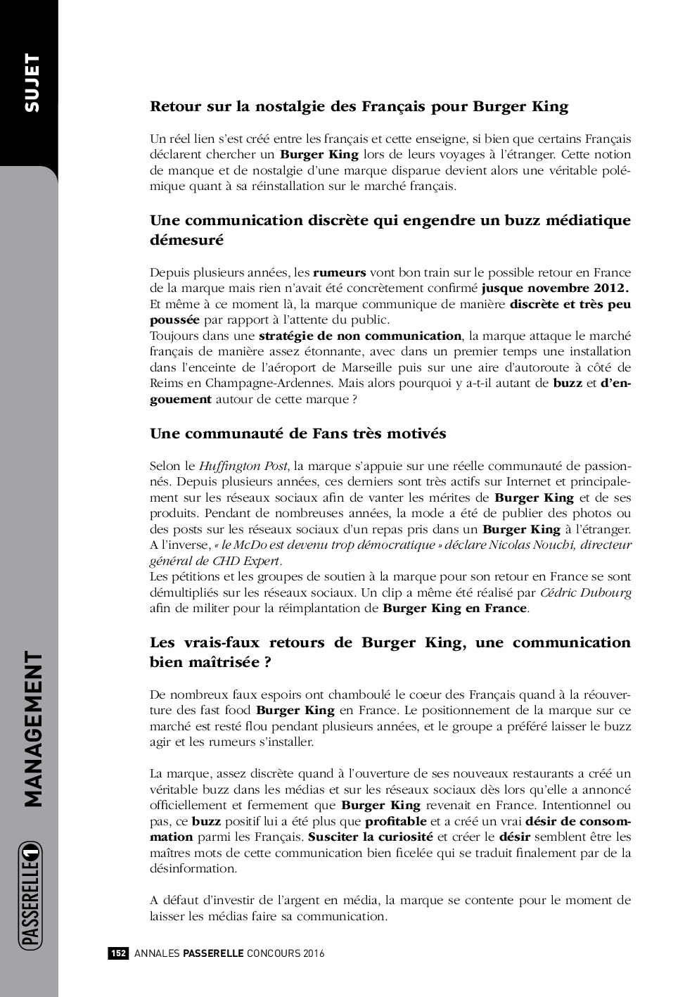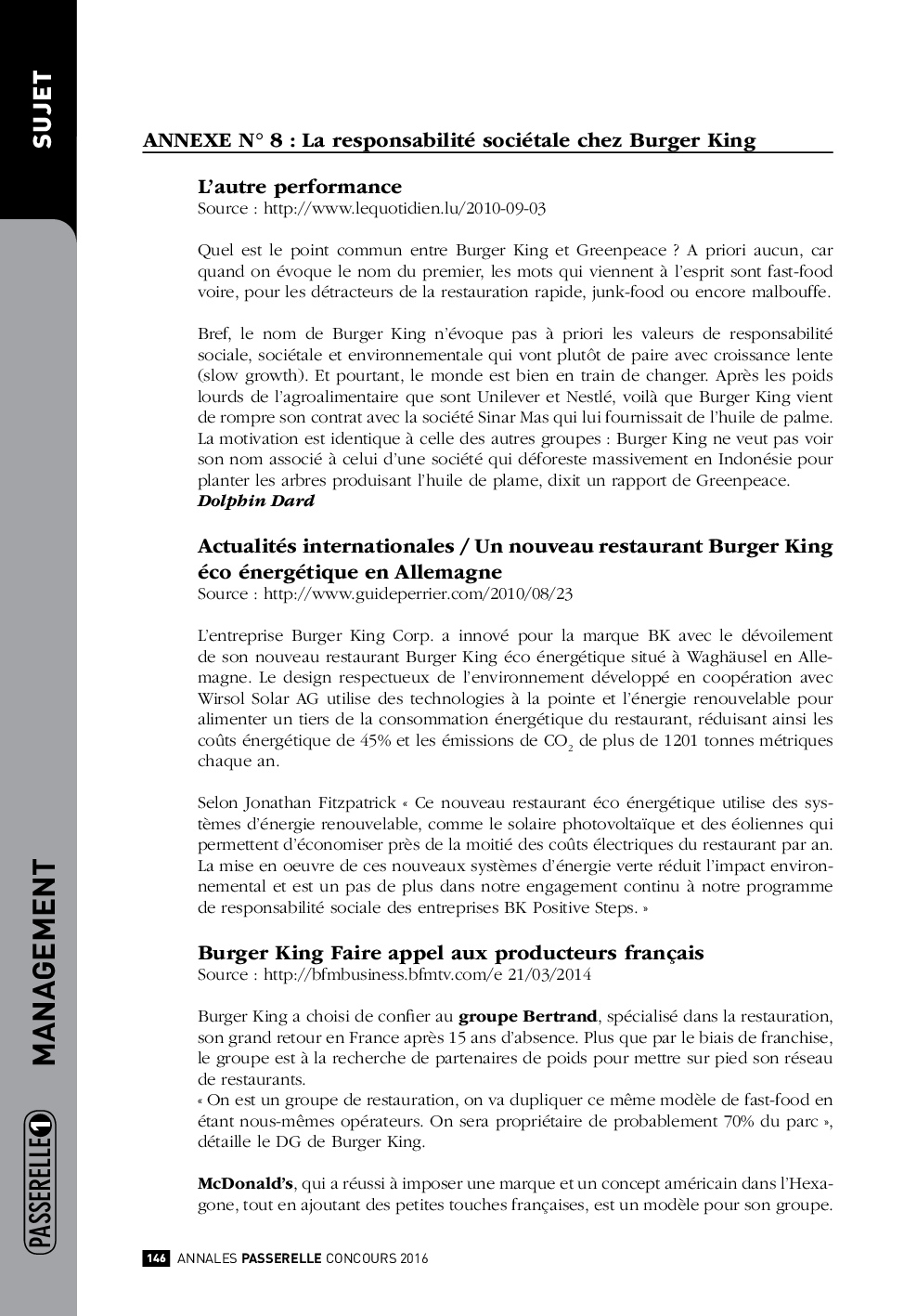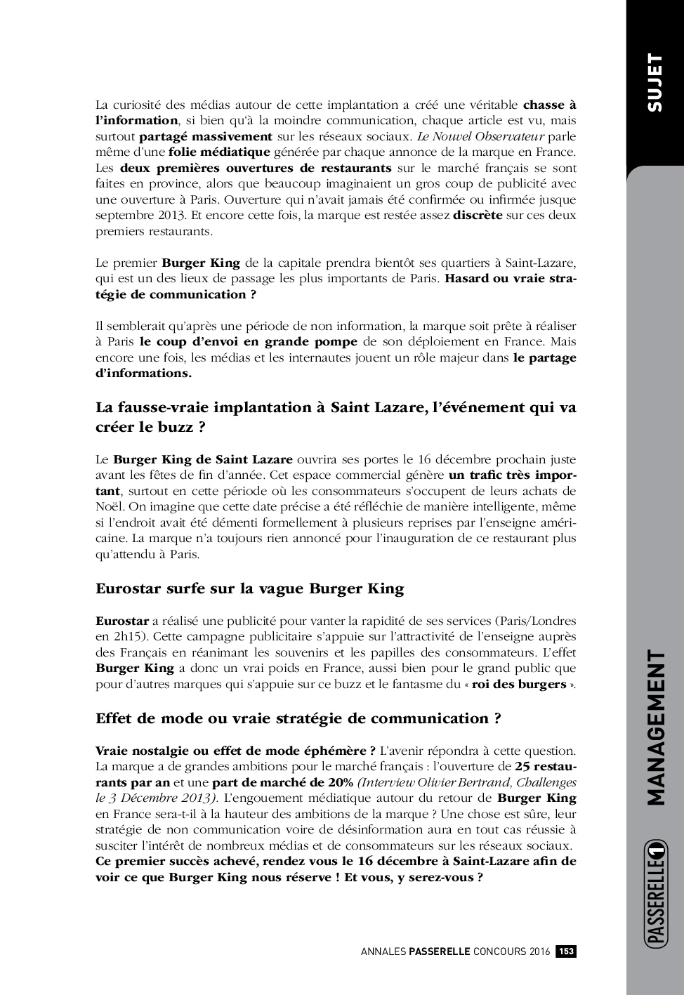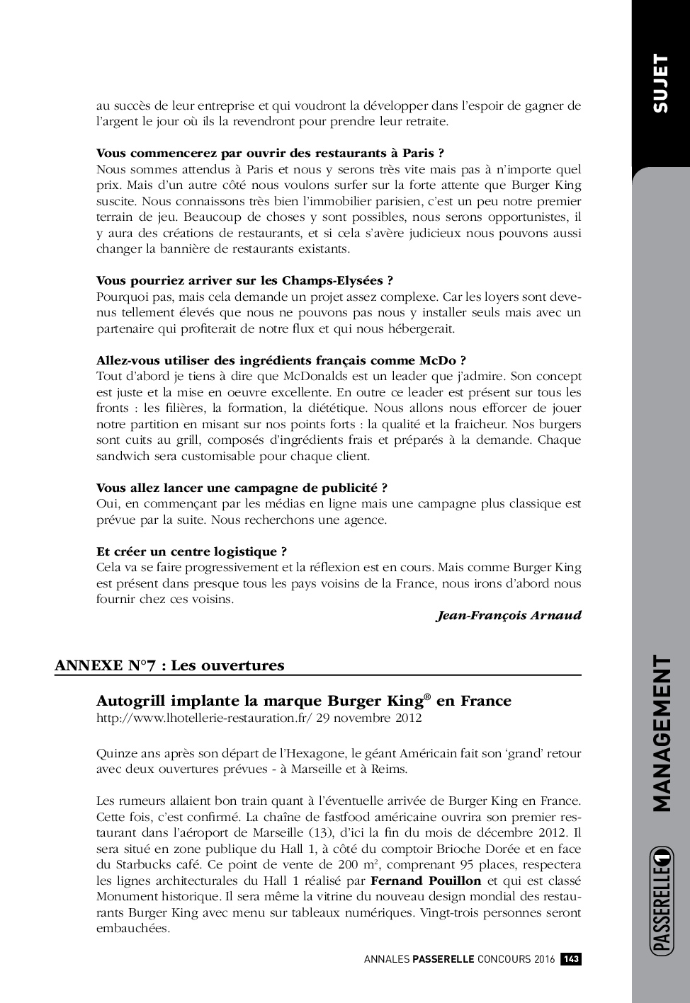 Concours Passerelle 1 2016 - Management d’une entreprise d’hôtellerie-restauration (Sujet)