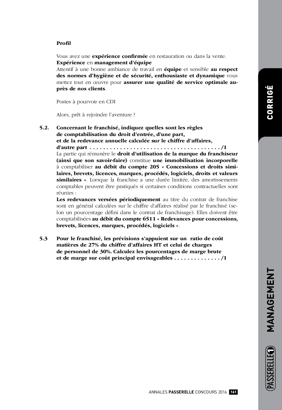 Concours Passerelle 1 2016 - Management d’une entreprise d’hôtellerie-restauration (Corrigé)