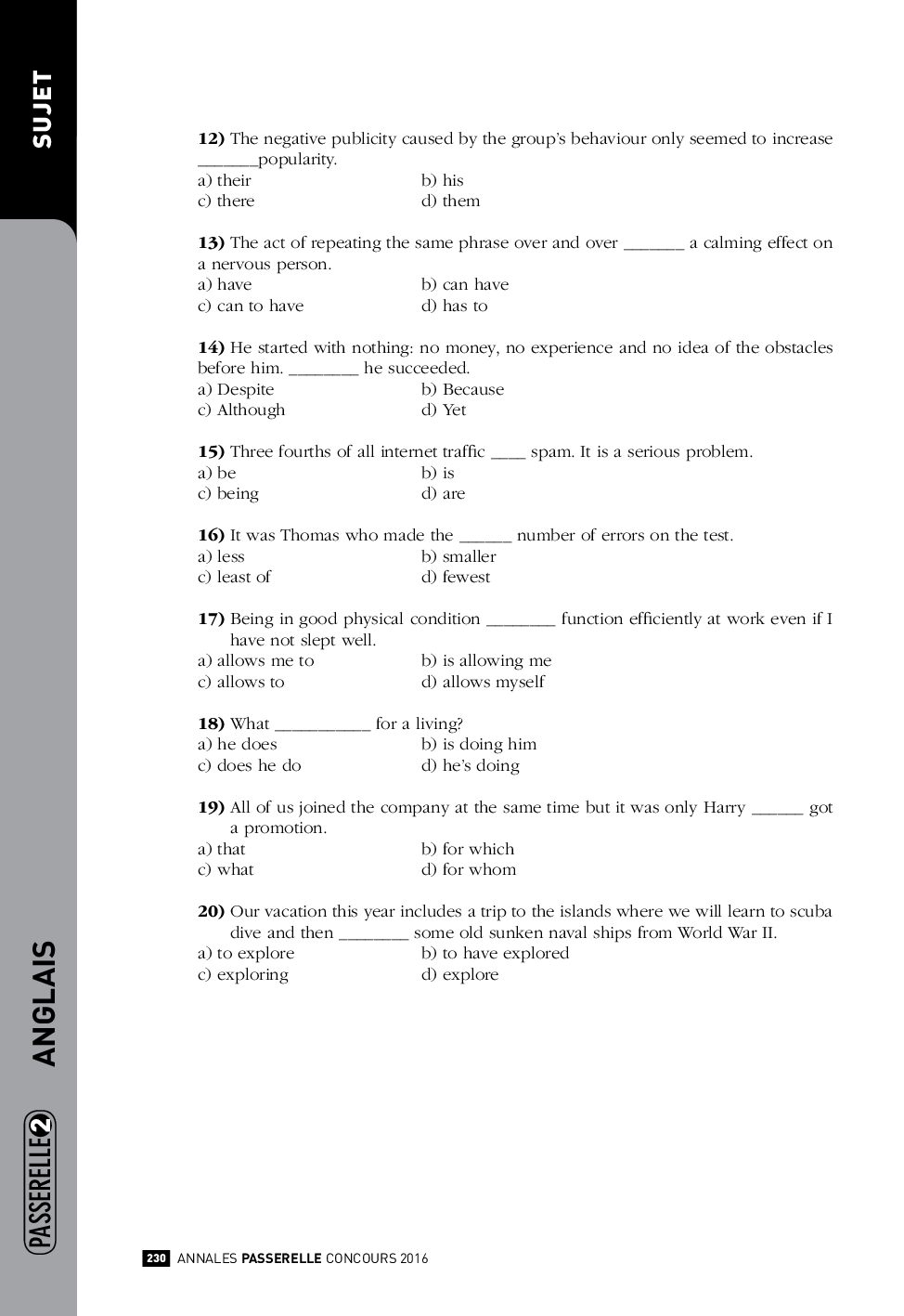 Concours Passerelle 2 2016 - Anglais (Sujet)