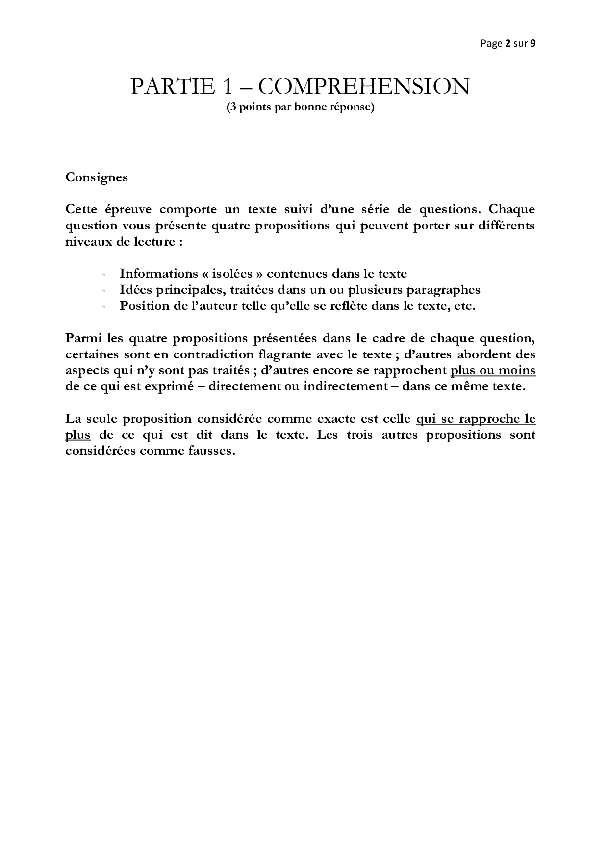 Concours ADVANCE 2012 - Compréhension et expression (Sujet)