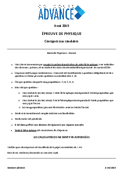 Concours ADVANCE 2019 - Physique (Sujet)